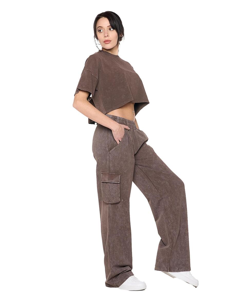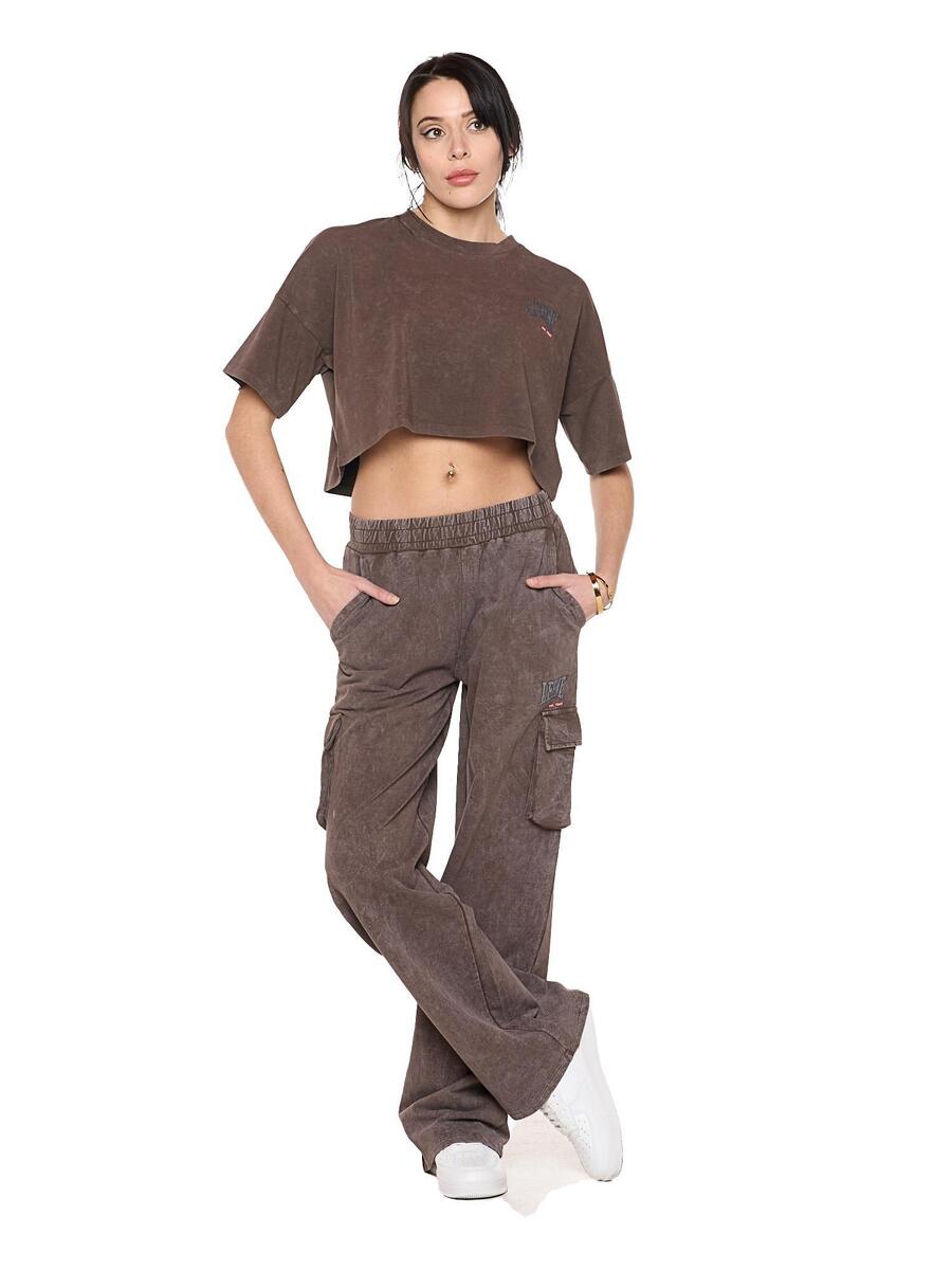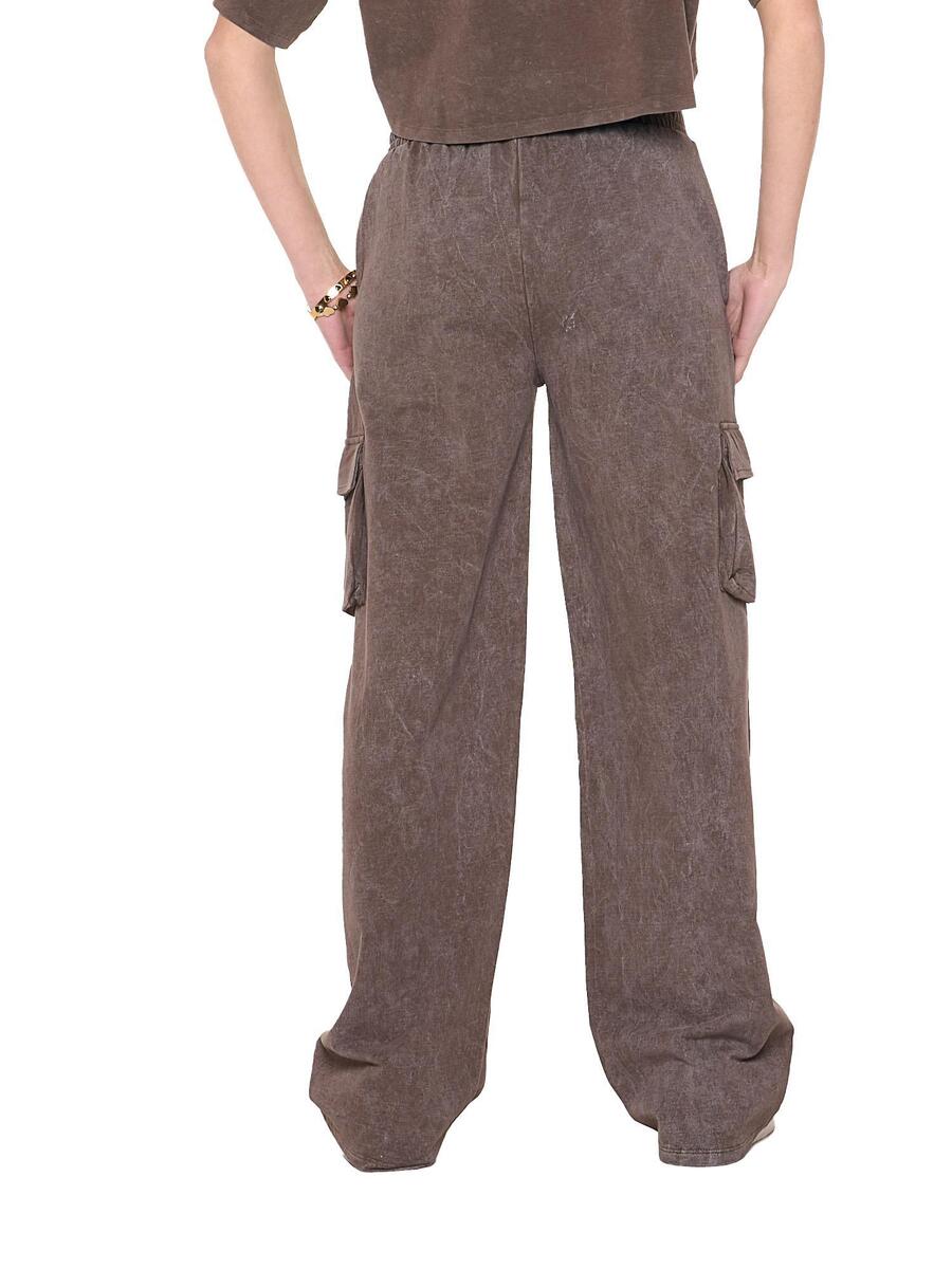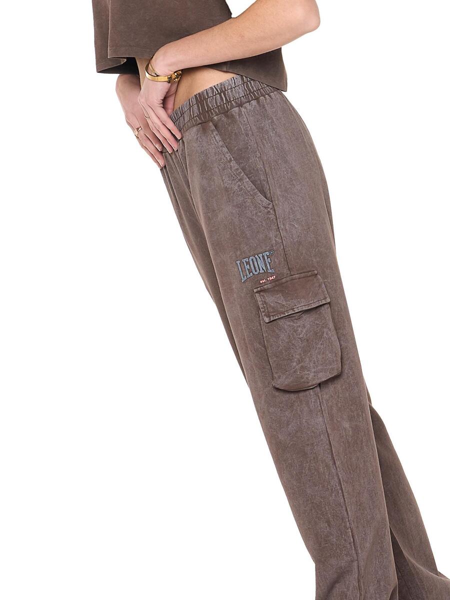 Женские брюки-палаццо из нечесаного хлопка с большими боковыми карманами и небольшим логотипом Leone 1947 на левой стороне.