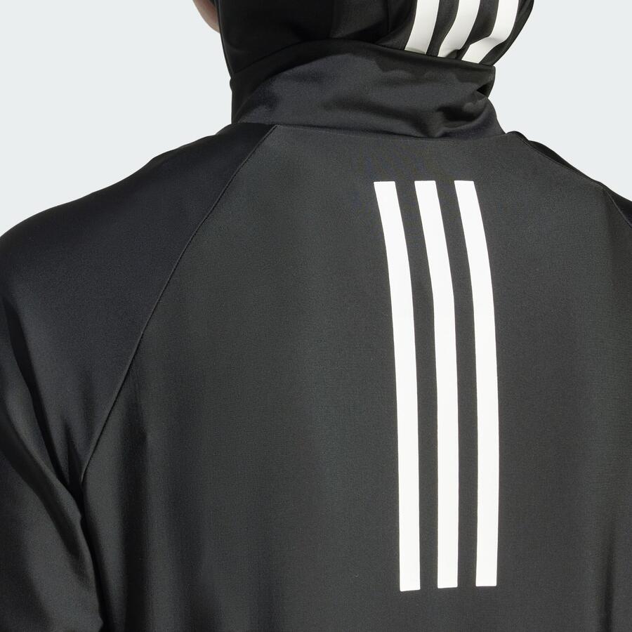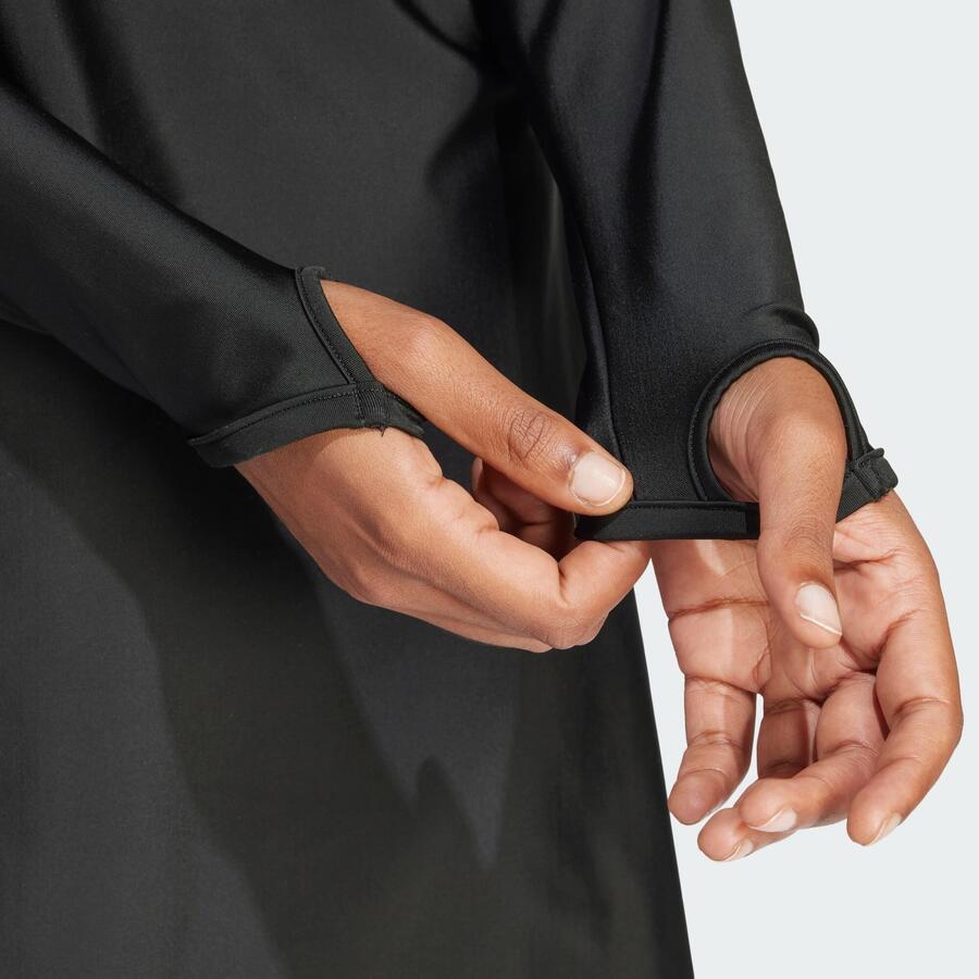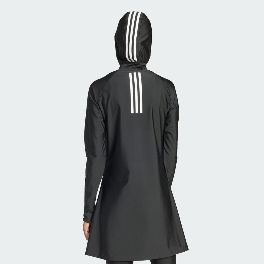 В этом топе для плавания с длинными рукавами от Adidas вы будете хорошо защищены и сможете уверенно плавать. Он изготовлен из лёгкого материала, устойчивого к хлору. Встроенный бюстгальтер со съёмными подушечками обеспечивает оптимальную поддержку во время плавания и других водных видов спорта. Хиджаб и леггинсы в комплекте для полного комплекта для плавания приобретаются отдельно.