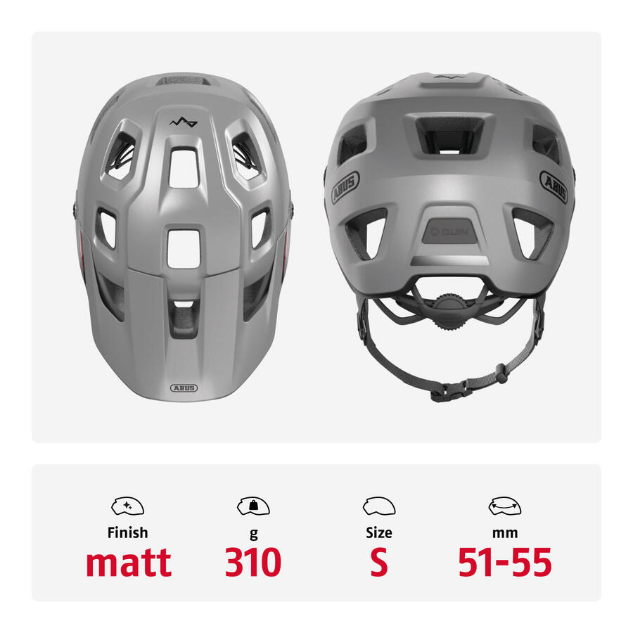 ABUS MoDrop — шлем для горного велосипеда на любой местности и для любого стиля катанияВы любите приключения и хотите продемонстрировать свои навыки на крутых склонах? Этот шлем для горного велосипеда станет лучшим спутником для долгих дней в горах или приключений на тропе. Но эта надежная защита головы также пригодится во время семейных вылазок. Оснащенный нашей специальной системой регулировки для горного велосипеда и распределителями строп TriVider, этот шлем предлагает множество функций, повышающих комфорт. Во время спуска регулируемый по высоте козырек защищает от свисающих веток. В случае падения он также может предотвратить прямой удар по лицу. Благодаря двухкомпонентной внешней оболочке нижняя кромка шлема также защищена. Это также обеспечивает большую гибкость в дизайне. И MoDrop действительно выделяется. Шлем сочетает в себе все, что нужно хорошему внедорожному гонщику, как визуально, так и функционально. Те, кто часто катается в одиночку по бездорожью, могут модернизировать свой шлем для горного велосипеда, установив чип QUIN. Чип используется для обнаружения падения и, в случае падения, уведомляет заранее выбранные контакты для экстренной связи. Эти контакты также получают информацию о местоположении пострадавшего. Чип можно приобрести отдельно и вставить в MoDrop. Другие преимущества продукта: Многослойная литая конструкция: производственный процесс обеспечивает прочное соединение между оболочками и обеспечивает устойчивость шлема. Zoom Ace MTB: система регулировки с полным кольцом внутри шлема обеспечивает хорошую посадку. Совместимость с хвостом: углубление в системе регулировки создает пространство для волос, собранных в хвост. GoggFit: спортивные очки для горного велосипеда можно закрепить на шлеме, когда они не используются. Вентиляция: благодаря 6 воздухозаборным и 8 воздухозаборным отверстиям вы сохраните прохладу. TriVider: плоский распределитель ремня, который не регулируется по высоте, однако ремень можно перемещать вбок (вправо или влево), чтобы отрегулировать положение уха.