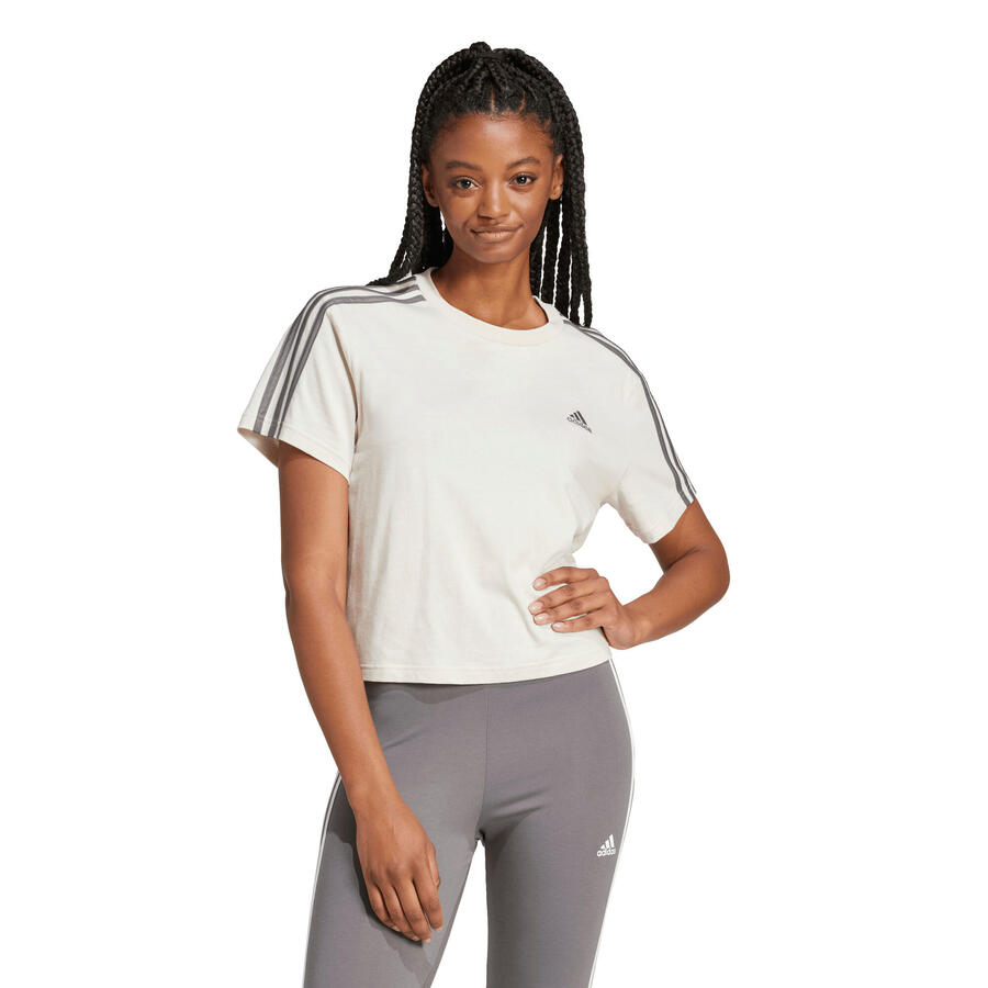 Женский укороченный топ adidas Essentials 3S. Эта укороченная модель — настоящий хит. Женственный укороченный топ adidas идеально сочетается с вашими любимыми брюками с высокой талией и воплощает непринужденный стиль 90-х. Наши изделия из хлопка поддерживают более экологичное хлопководство. Свободный крой. Круглый вырез горловины в рубчик. Состав: 100% хлопок.