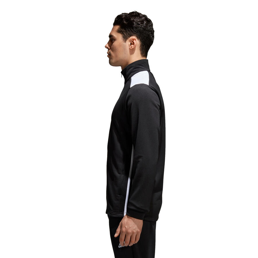 Мужская спортивная куртка adidas с тремя полоскамиСпортивная мужская спортивная куртка adidas с тремя полосками. Внутренняя часть спортивной куртки adidas с мягким начесом обеспечивает удобную посадку. Куртка оснащена эластичными манжетами и двумя застегивающимися карманами.