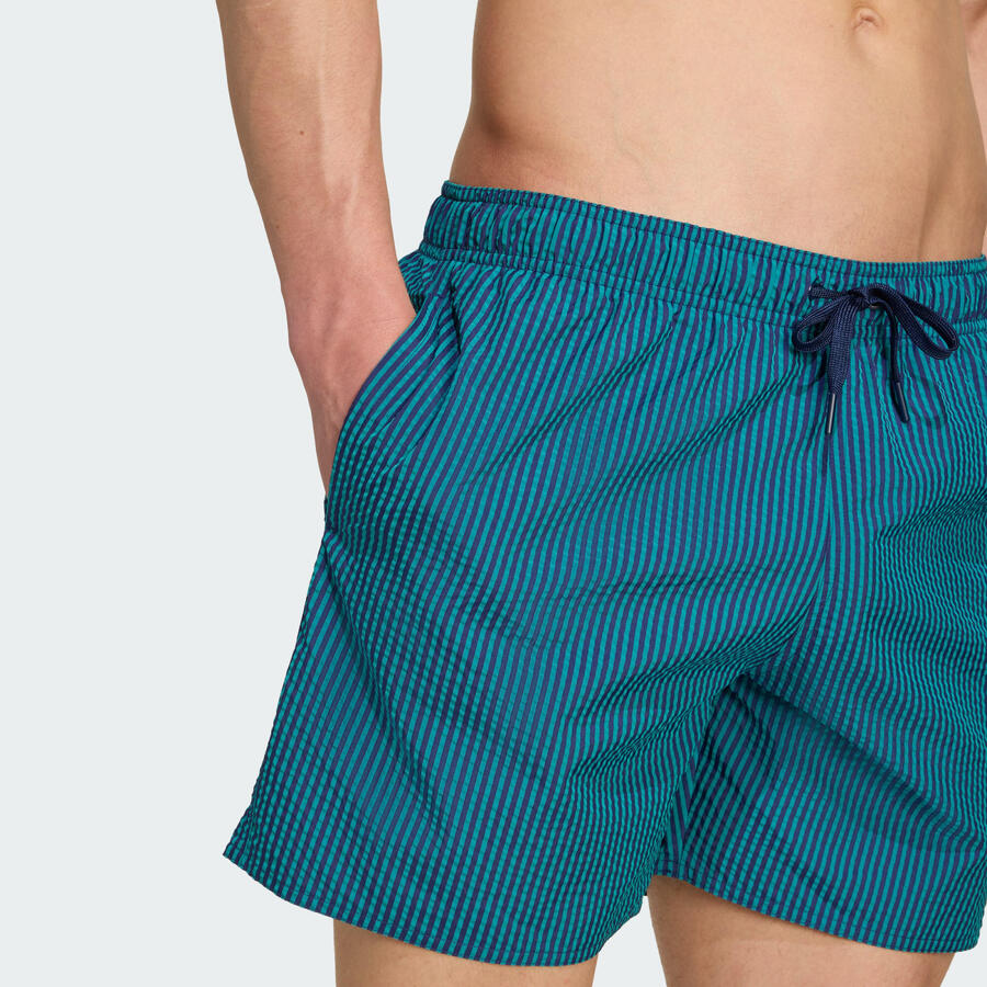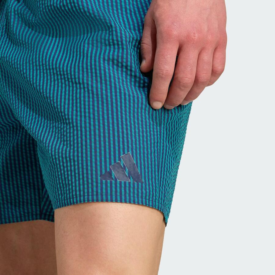 Отдыхаете ли вы у бассейна или просто ныряете, эти шорты для плавания adidas обеспечат вам комфорт. Полосатая ткань сирсакер лёгкая и быстросохнущая, идеально подходит для тёплой погоды. Внутренняя сетчатая вставка обеспечивает надёжную защиту.