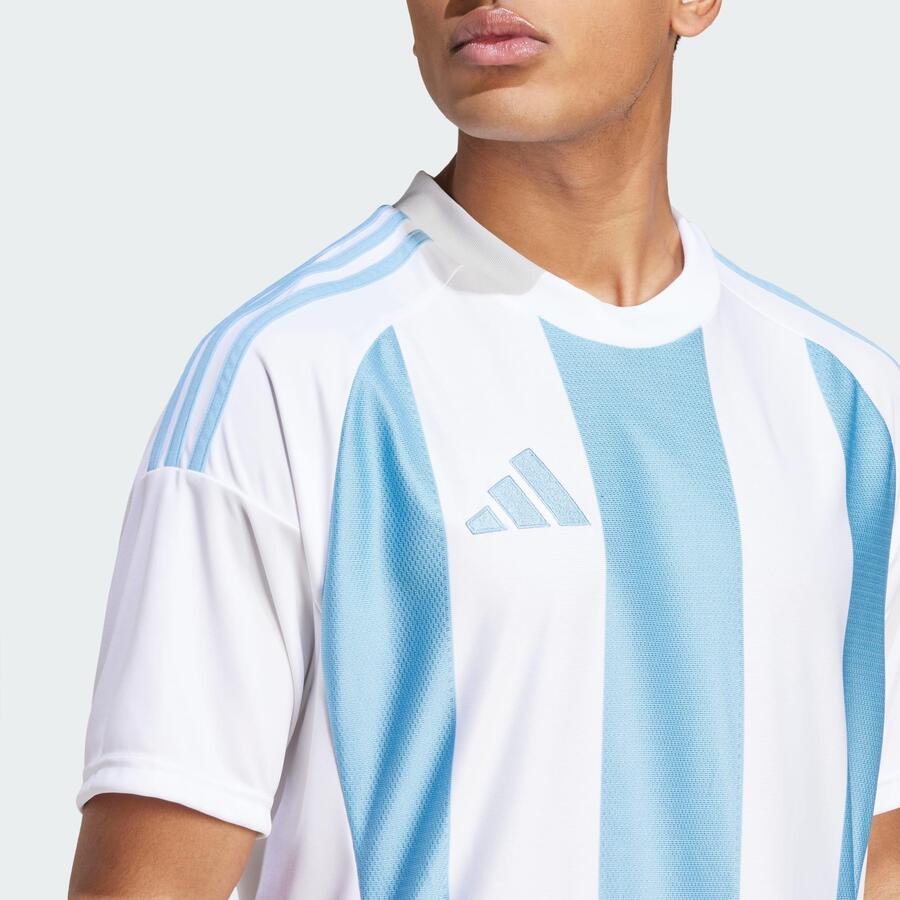 В этом легендарном образе вы будете привлекать внимание на поле не только своими навыками, но и стилем. Эта футболка adidas Striped 24 идеально подходит для вашей командной формы и оснащена влагоотводящей технологией AEROREADY, чтобы вы могли играть в свой лучший футбол даже в жару. Открытые области на груди, спине и рукавах позволяют разместить ваше имя, игровой номер и информацию о клубе. Изделие изготовлено из 100% переработанных материалов. Повторное использование существующих материалов помогает нам сократить отходы, снизить зависимость от невозобновляемых ресурсов и уменьшить углеродный след нашей продукции.