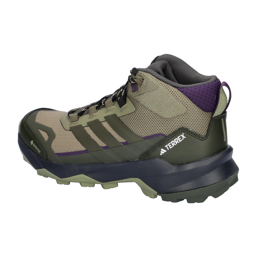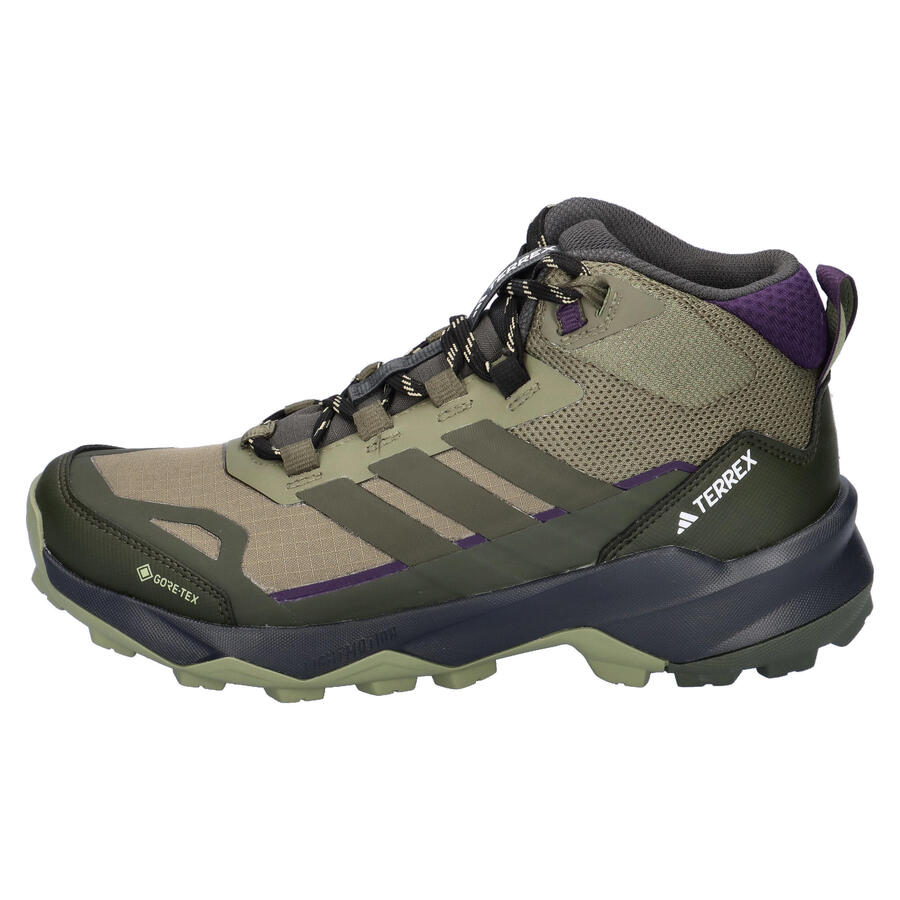 Туристические ботинки adidas TERREX TERREX SKYCHASER AX5 MID GTX W. Куда бы ни привел вас маршрут, эти походные ботинки adidas станут вашим спутником в приключениях. Водонепроницаемая и дышащая мембрана GORE-TEX обеспечит комфортный микроклимат в течение всего дня, как в сырую, так и в сухую погоду. Промежуточная подошва LIGHTMOTION EVA обеспечивает комфорт и поддержку каждого шага, а резиновая подошва Continental гарантирует надежное сцепление на мокрой и сухой дороге. Эти универсальные и легкие походные ботинки откроют для вас новые горизонты на любом маршруте и в любой местности. Материал верха: текстиль, другие материалы. Подкладка и стелька: текстиль. Подошва: другие материалы.