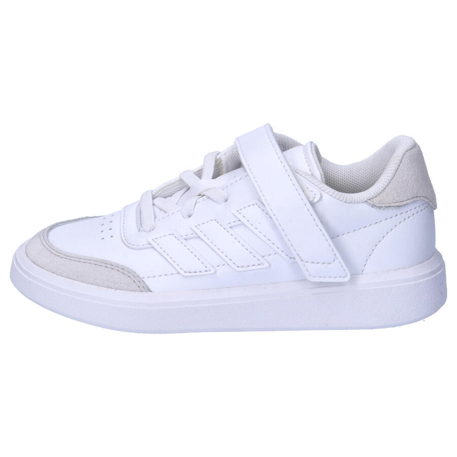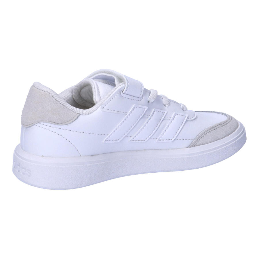 Детские кроссовки adidas COURTBLOCK EL C. Эти элегантные спортивные детские кроссовки adidas с верхом из мягкой искусственной кожи идеально подходят для активных детей. Мягкая подкладка обеспечивает комфорт, а прочная резиновая подошва типа чашечка гарантирует оптимальное сцепление при беге, скалолазании и ударах. Классическая шнуровка спереди дополнена ремешком на липучке для надежной посадки. Верх: другой материал. Подкладка и стелька: текстиль. Подошва: другой материал.