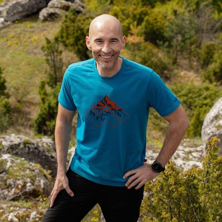 Футболка Mersmel из 100% органического хлопка идеально подходит для любителей активного отдыха. Горный принт на ярком логотипе бренда подчеркивает связь с природой и активными приключениями.