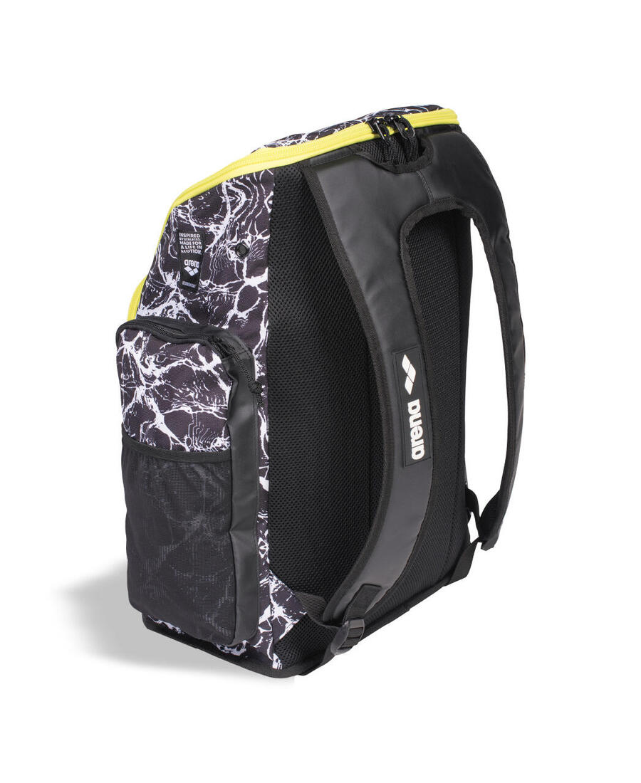 Рюкзак Arena Spiky III 45 Allover Black / White Вместительное основное отделение Различные отделения на молнии Сетчатые боковые карманы Отдельный карман для мокрой одежды Усиленное дно
