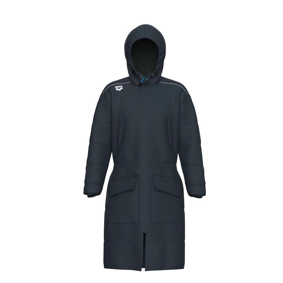 Термокуртка Arena Unisex Team Parka Solid. Эта парка для плавания согреет вас в холодную погоду и оснащена множеством карманов для хранения необходимых вещей. Наша парка Solid Team Parka с подкладкой из микрофибры оснащена внутренними и внешними карманами для хранения вещей и согрева рук. Капюшон и пояс оснащены шнурком для индивидуальной регулировки. Эта куртка украшена нашим логотипом и названием. Сделайте ее частью вашей зимней формы для соревнований. Изготовлена из 100% переработанного материала, что минимизирует воздействие на окружающую среду. Слегка свободный крой в плечах, талии и бедрах. Подходит для всех полов. Техничная одежда, разработанная для защиты от непогоды. Материал: 100% полиамид.