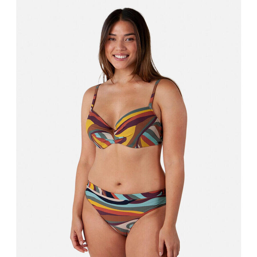 Бюстгальтер Varuna Wire изготовлен из переработанной ткани и имеет мягкие формованные чашки и металлизированную нить для максимальной поддержки. Верхняя часть бюстгальтера оснащена регулируемыми бретельками с крючками и петлями, которые позволяют подогнать его по фигуре: прямой, с крест-накрест или без. Застегивается на матово-золотую застежку.