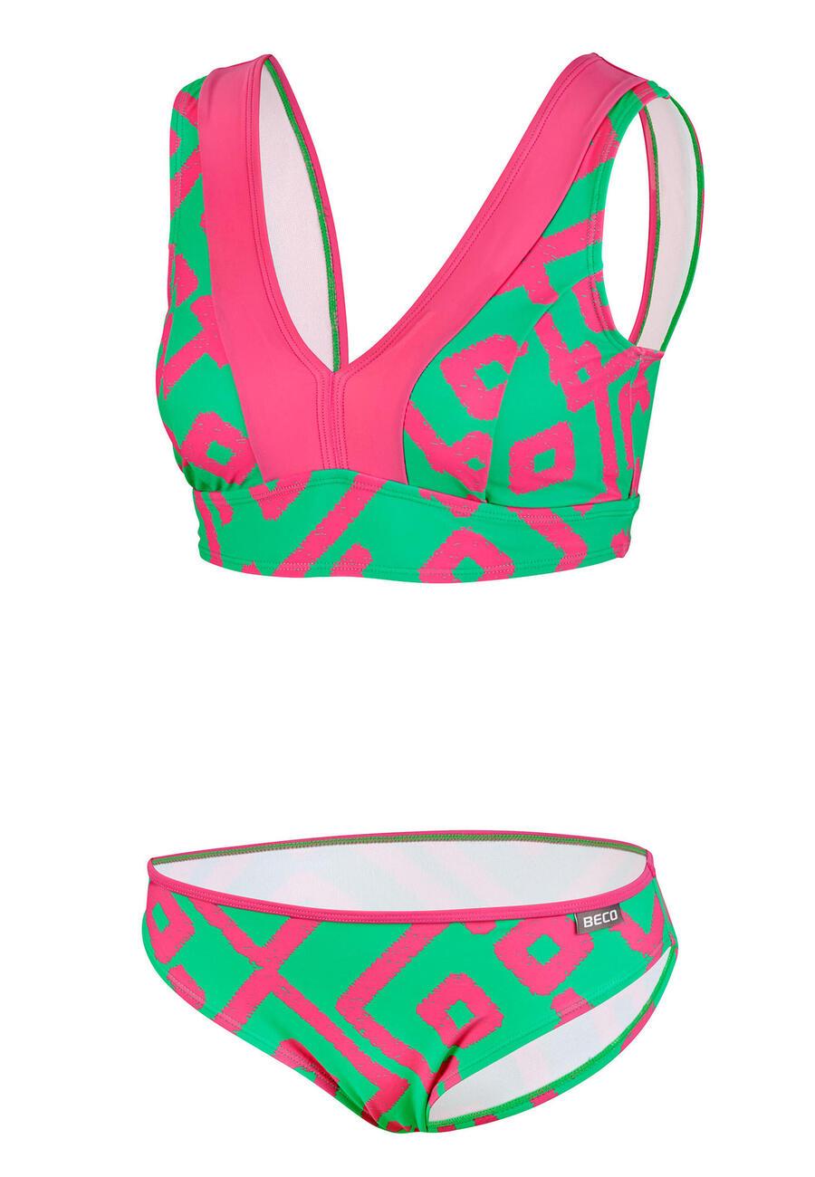 Бюстье-бикини BECO Inka Graphic сочетает в себе экстравагантность и комфорт в стильном дизайне. Яркий рисунок Inka в гармоничных цветовых сочетаниях создаёт неповторимый образ. Крой бюстье с вшитыми мягкими чашечками обеспечивает оптимальную поддержку и идеальную посадку. Широкие бретели не только очень удобны, но и регулируются в трёх положениях сзади, обеспечивая идеальную посадку и комфорт. Плотный материал на подкладке приятен на ощупь и обеспечивает ощущение безопасности – будь то плавание, загорание или игра в пляжный волейбол. Трусики-хипстеры в тон идеально сидят на бёдрах и стильно дополняют современный образ. Незаменимая вещь для тех, кто хочет выглядеть модно и чувствовать себя комфортно на воде!