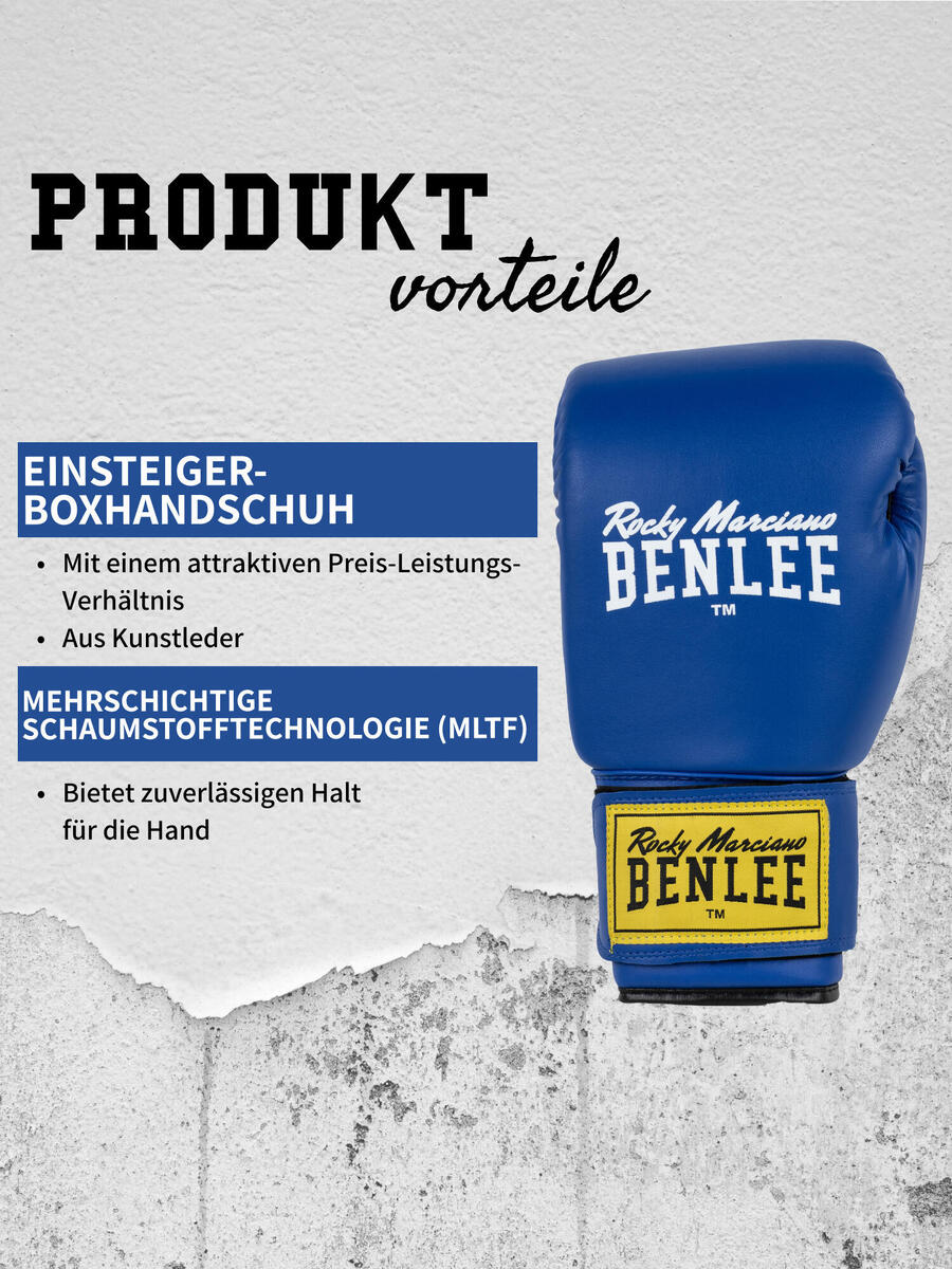Тренировочные боксёрские перчатки BENLEE. Доступны различные размеры. Изготовлены из искусственной кожи. С широкой застёжкой-липучкой на запястье. Логотип бренда на перчатке и застёжке-липучке.