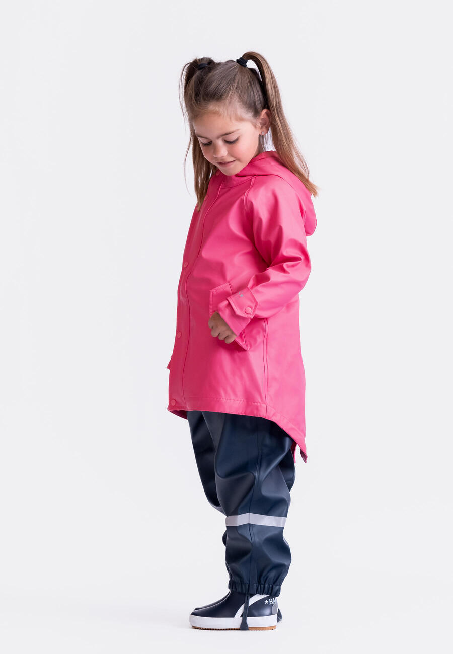 BMS HafenCity Coat SoftSkin — 100% водонепроницаемый плащ с капюшоном для мальчиков и девочек. Регулируемая ширина рукавов с помощью кнопок. Боковой карман. Молния с защитой подбородка и застежкой на кнопках. Удлинённая спинка с кнопками. Высококачественная нейлоновая подкладка. Текстиль протестирован на наличие вредных веществ согласно Oeko-Tex 100 — Категория 1, номер теста D11-0716, Хоэнштайн.