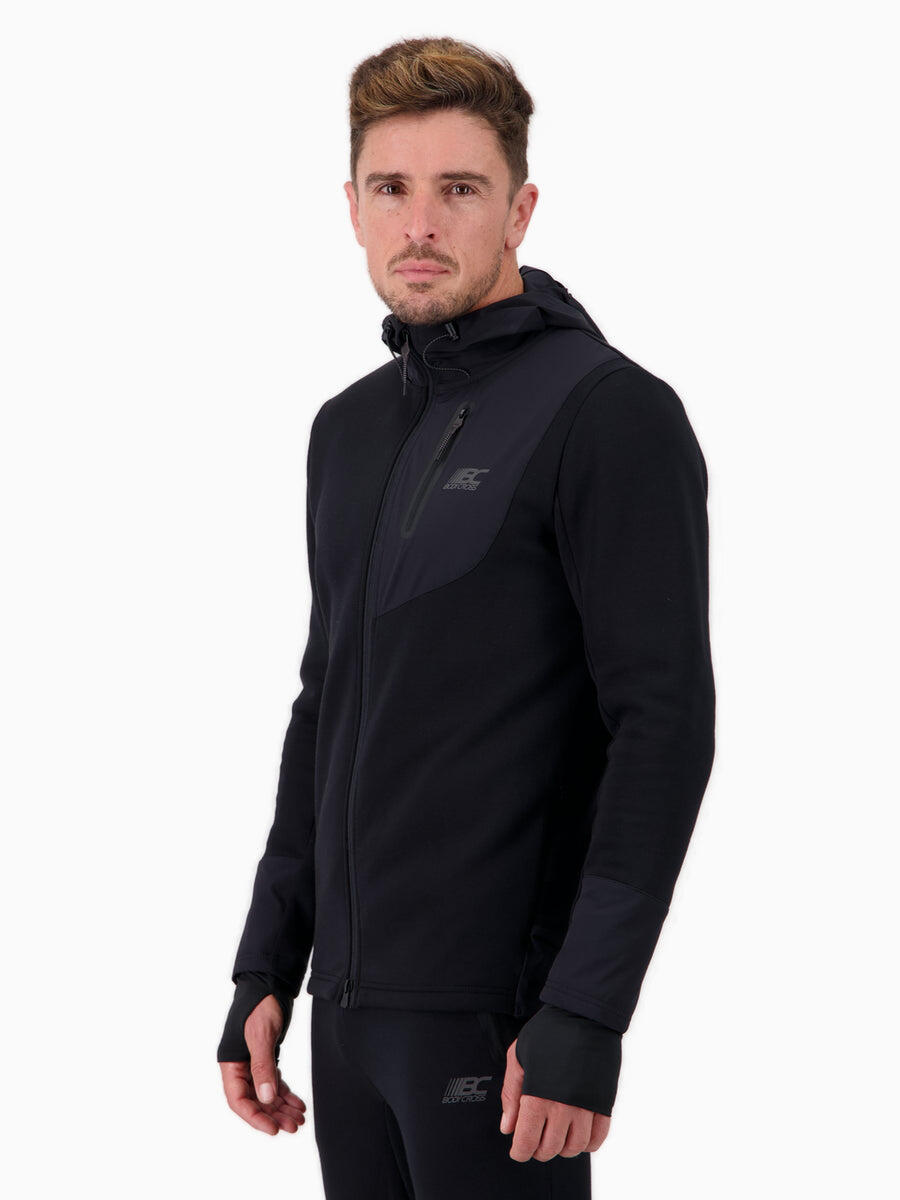 Мягкий флис (70% хлопок, 30% полиэстер) обеспечивает тепло и комфорт, а легкий нейлон (92% нейлон, 8% эластан) защищает от ветра и дождя.