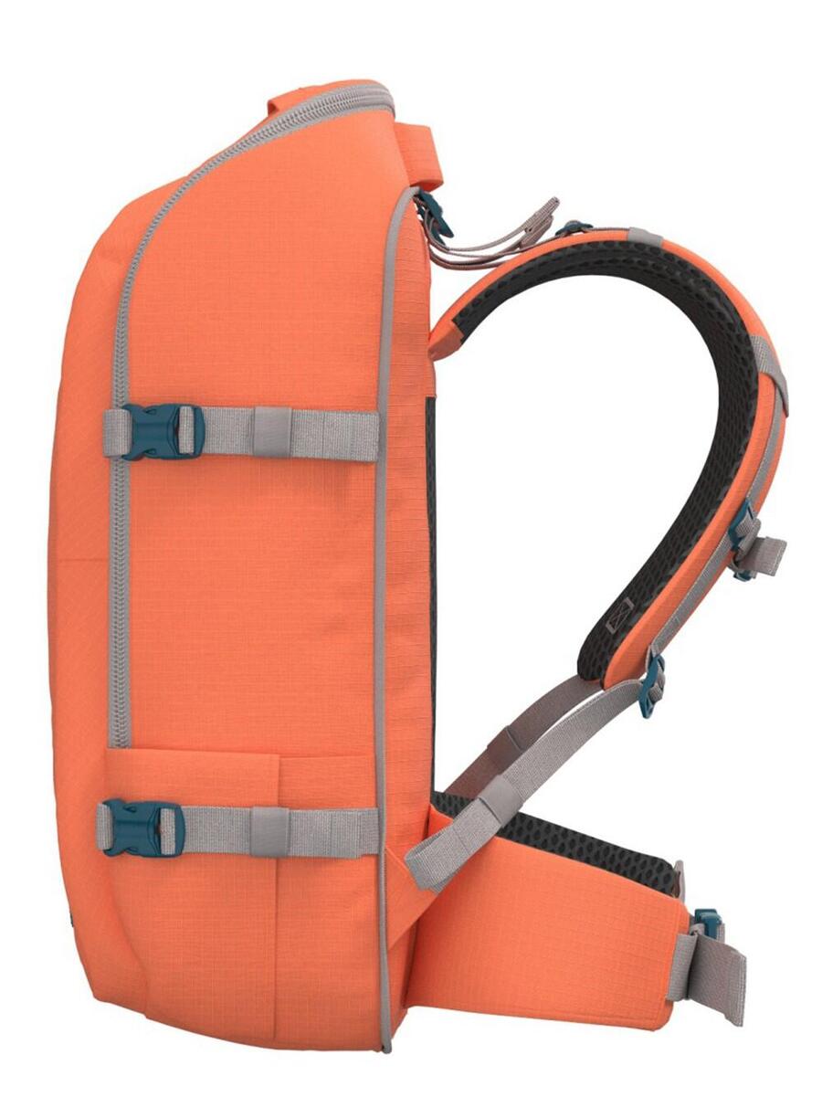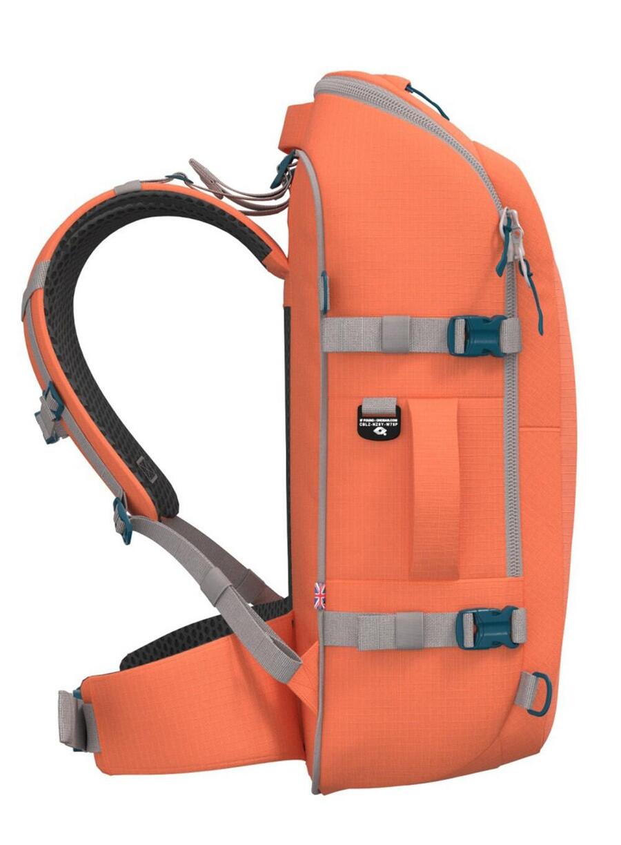 Дорожный рюкзак CabinZero Adv 42L с телескопической верхней и боковой ручкой станет вашим надежным спутником в любой поездке. Рюкзак объемом 42 литра можно отрегулировать до оптимального размера с помощью боковых компрессионных ремней. Мягкая задняя панель и съемные плечевые ремни обеспечивают комфортную переноску: благодаря перфорированной структуре они хорошо вентилируются и обеспечивают беспрепятственный поток воздуха. Нагрудный ремень, регулируемый четырьмя пряжками, обеспечивает правильную устойчивость при переноске. Основное отделение оснащено сетчатыми и на молнии карманами, а также отделением для ноутбука. Расширяемый внешний карман для бутылки позволяет держать бутылку с водой под рукой и легко поддерживать водный баланс. Легкодоступный передний карман на молнии и карман для солнцезащитных очков позволяют организовать все необходимые в поездке вещи. Водоотталкивающий полиэстер плотностью 500 ден оснащен молниями YKK, форма и конструкция которых позволяют надежно застегивать их небольшим кодовым замком. Однако, пожалуй, самое полезное решение для путешествий — это то, что все дорожные рюкзаки CabinZero имеют уникальный идентификационный номер, связанный с системой отслеживания багажа OKOBAN. Используя код на идентификационной бирке, система легко определяет местонахождение утерянного багажа, позволяя отслеживать его в 2200 аэропортах по всему миру. Рюкзак с карабином для ключей весит 1415 г и имеет размеры 55 x 35 x 20 см.