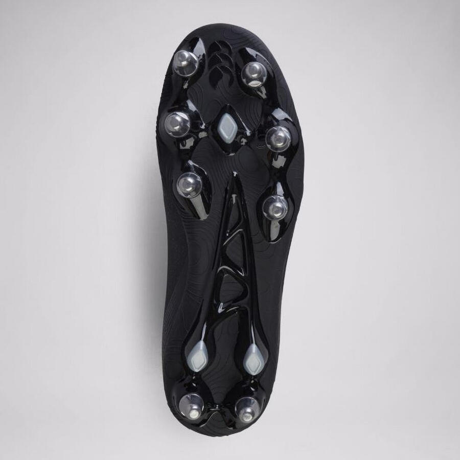Оптимизированная посадка благодаря литой пятке и расширенному носку обеспечивает максимальный комфорт для требовательных регбистов. Восемь шипов диаметром 18 мм обеспечивают максимальное сцепление, сохраняя устойчивость даже на сложных покрытиях.