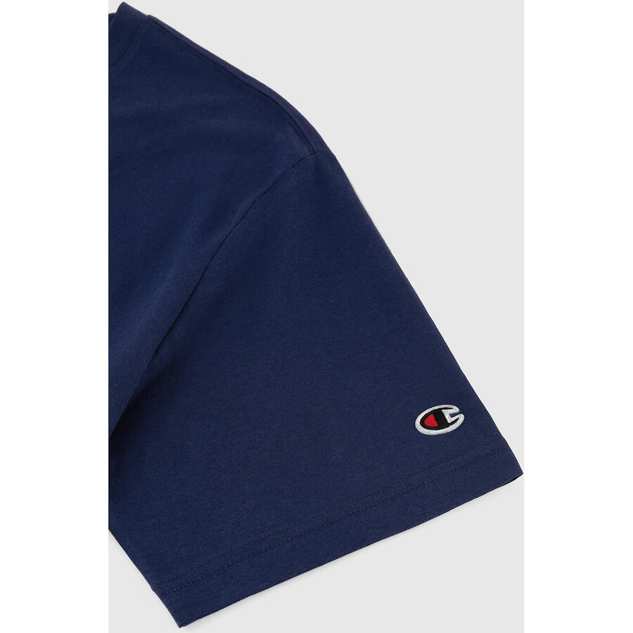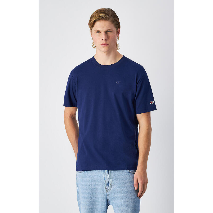 Ощутите максимальный комфорт и стиль в футболке Champion с круглым вырезом для мужчин. Эта мужская футболка идеально подходит для повседневной носки и предлагает современный крой, который адаптируется к вашему телу, не стесняя движений.