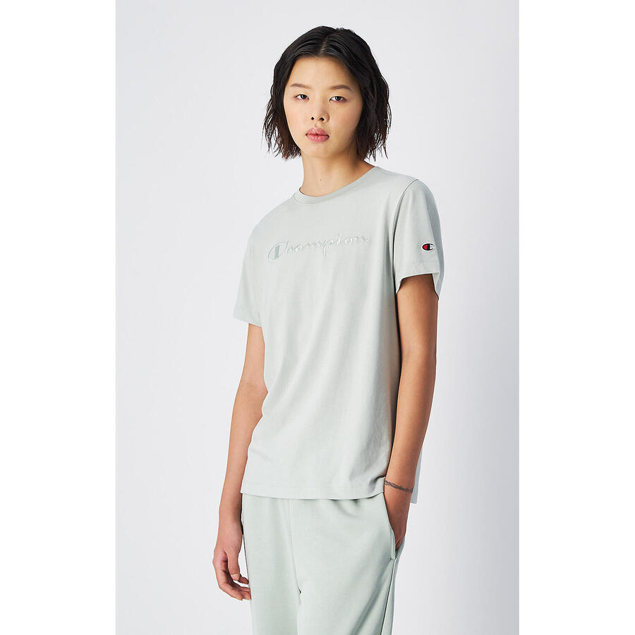 Женская футболка Champion с круглым вырезом доступна в различных цветах и размерах. Она проста в уходе и сохраняет форму и цвет даже после частой стирки.