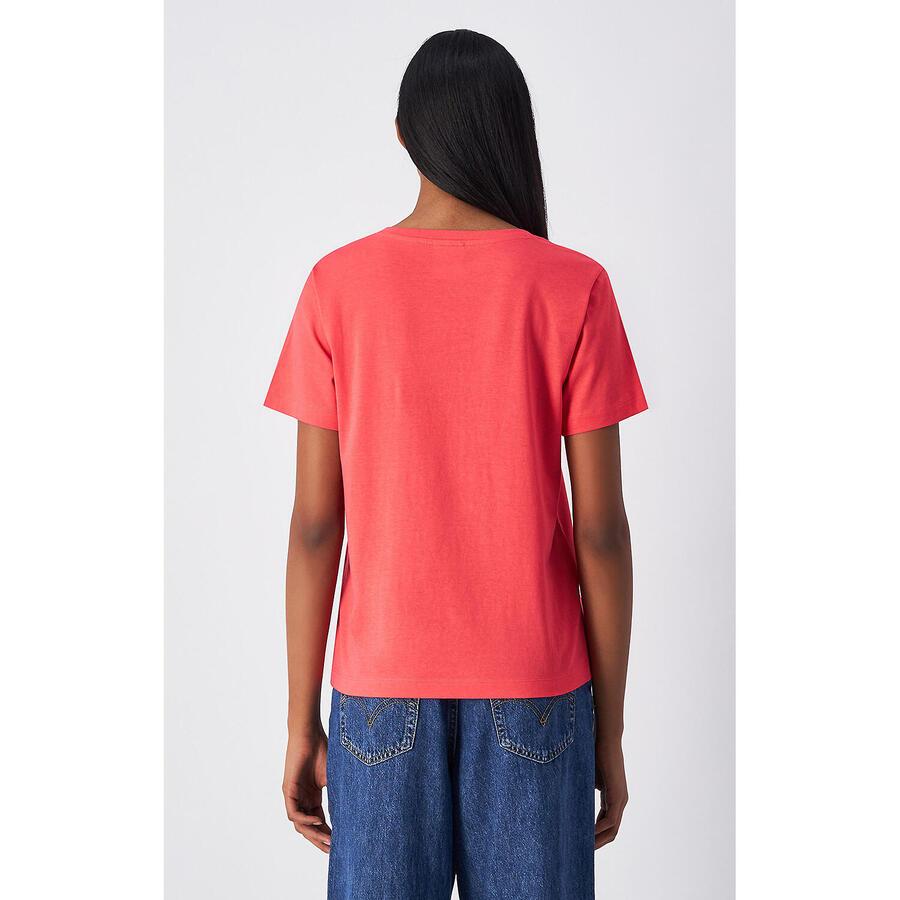 Обновите свой классический образ с этой стильной женской футболкой с V-образным вырезом. Эта модель отличается удобным кроем из мягкого хлопка с едва заметными деталями логотипа.