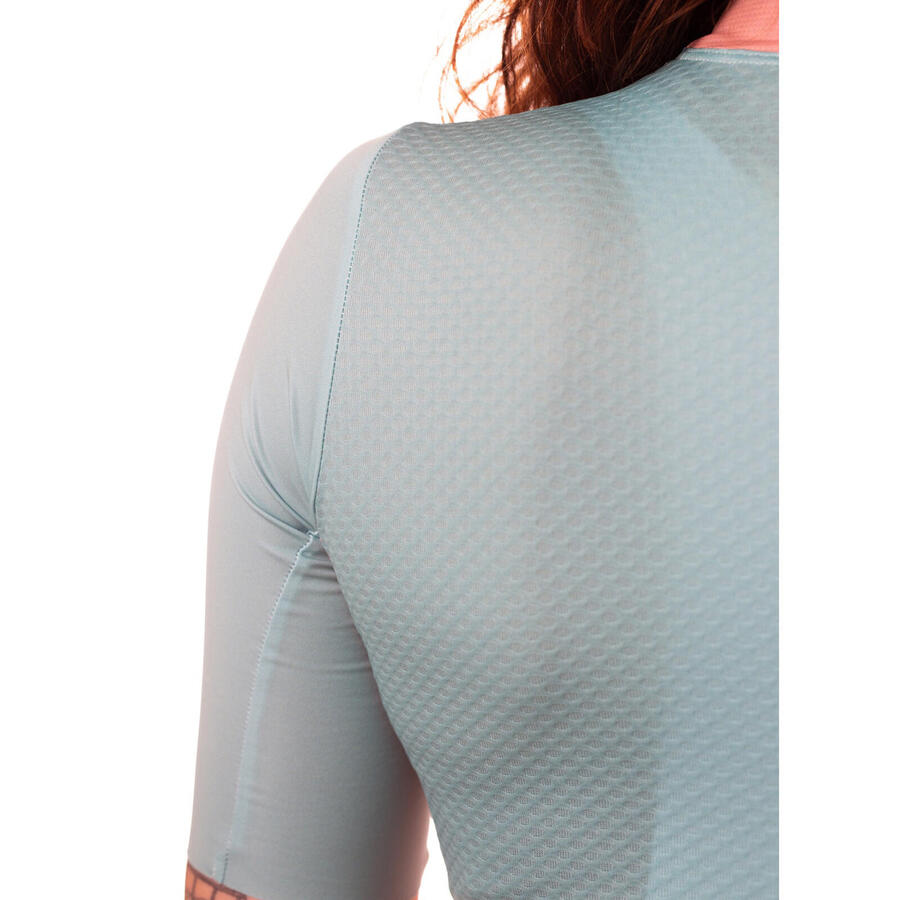Женская летняя веломайка: летняя веломайка с короткими рукавами и облегающим кроем для максимального комфорта во время всех ваших велопрогулок. Облегающий крой адаптируется к любой форме тела и был специально разработан для женщин. Эта высококачественная женская веломайка изготовлена из трех функциональных материалов: биэластичного и дышащего спереди и по бокам, высокодышащей и легкой сетки на спине и аэродинамической ткани для рукавов. Они вырезаны лазером для оптимального сцепления и не имеют раздражающих кожу силиконовых полосок. Эластичность ткани обеспечивает идеальную посадку рукавов на руках. Ткань на торсе и по бокам впитывает пот и отводит его наружу, облегая как вторая кожа. Тонкий сетчатый материал на спине отводит пот и очень быстро сохнет. Три усиленных кармана вмещают еду, ветровку, инструменты для ремонта и многое другое. Правый задний карман имеет дополнительный карман из водонепроницаемой ткани, доступный через светоотражающую молнию, где вы можете безопасно хранить документы или банкноты. Эластичная резинка на внутренней стороне спинки, благодаря силиконовому вставке, обеспечивает идеальную посадку на бедрах. Молния во всю длину спереди позволяет полностью расстегнуть джерси. Джерси обтянуто тканью по всей длине, что обеспечивает превосходный внешний вид. Эта высококачественная женская веломайка итальянского производства идеально подходит для шоссейных, кросс-кантри и гравийных велопрогулок.