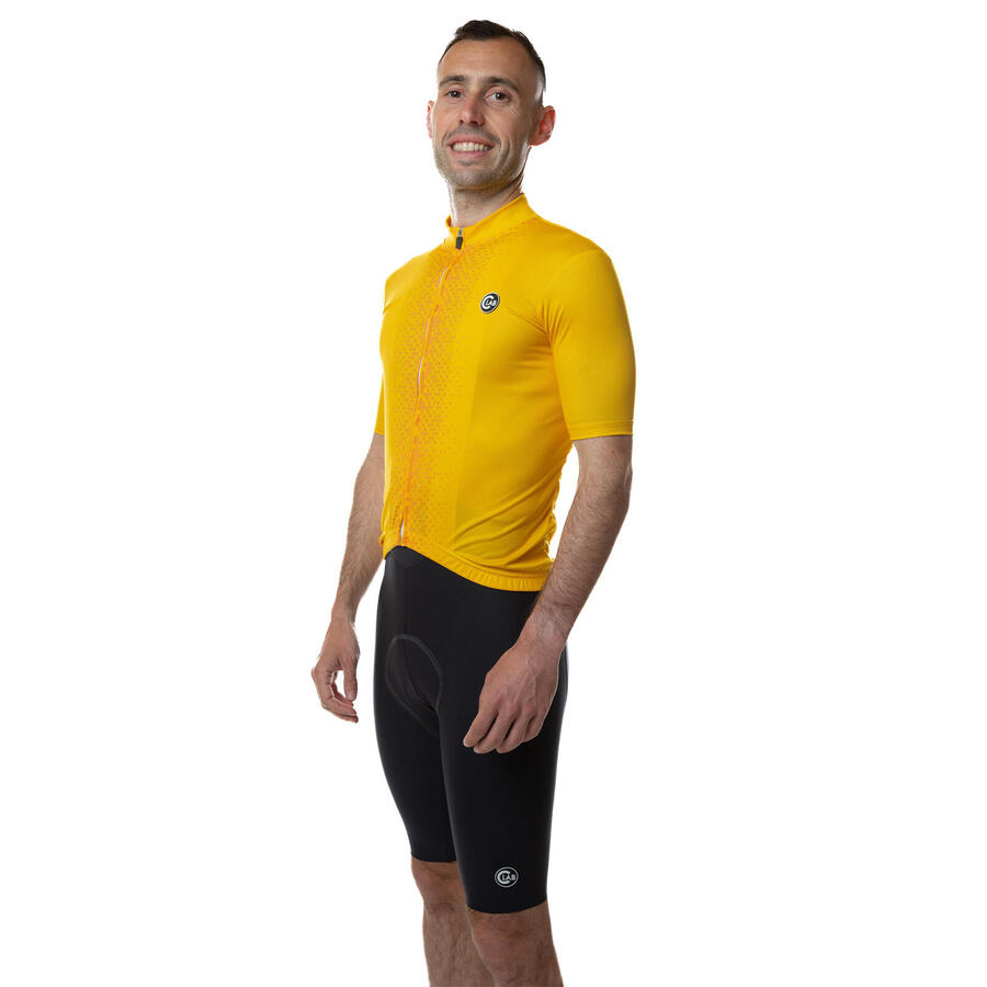 МУЖСКАЯ ВЕЛОСИПЕДНАЯ ФУТБОЛКА Летняя мужская веломайка с короткими рукавами, облегающая (slim fit) для максимального комфорта во время всех ваших велопрогулок. Облегающий крой, адаптируется к любой форме тела. Эта высококачественная веломайка изготовлена из дышащей, биэластичной ткани, легкой и удобной. Техническая ткань впитывает пот и отводит его наружу, поэтому вы всегда чувствуете себя комфортно. На спине есть три кармана на резинке, которые предлагают место для еды, защиты от ветра, ремонтных материалов и т. д. Эластичная лента прикреплена к нижней внутренней части спины, которая благодаря силиконовой полоске обеспечивает идеальную посадку веломайки на бедрах. Благодаря молнии по всей длине можно расстегнуть джерси. Она покрыта тканью по всей длине, что обеспечивает безупречный вид. Эта мужская веломайка, сделанная в Италии, идеально подходит для всех туров на шоссейном велосипеде, горном велосипеде для кросс-кантри или гравийном велосипеде. Он предлагает непревзойденное соотношение цены и качества.