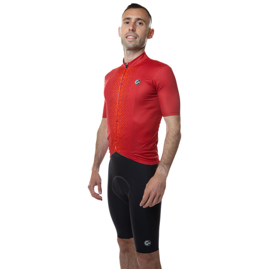 МУЖСКАЯ ВЕЛОСИПЕДНАЯ ФУТБОЛКА Летняя мужская веломайка с короткими рукавами, облегающая (slim fit) для максимального комфорта во время всех ваших велопрогулок. Облегающий крой, адаптируется к любой форме тела. Эта высококачественная веломайка изготовлена из дышащей, биэластичной ткани, легкой и удобной. Техническая ткань впитывает пот и отводит его наружу, поэтому вы всегда чувствуете себя комфортно. На спине есть три кармана на резинке, которые предлагают место для еды, защиты от ветра, ремонтных материалов и т. д. Эластичная лента прикреплена к нижней внутренней части спины, которая благодаря силиконовой полоске обеспечивает идеальную посадку веломайки на бедрах. Благодаря молнии по всей длине можно расстегнуть джерси. Она покрыта тканью по всей длине, что обеспечивает безупречный вид. Эта мужская веломайка, сделанная в Италии, идеально подходит для всех туров на шоссейном велосипеде, горном велосипеде для кросс-кантри или гравийном велосипеде. Он предлагает непревзойденное соотношение цены и качества.