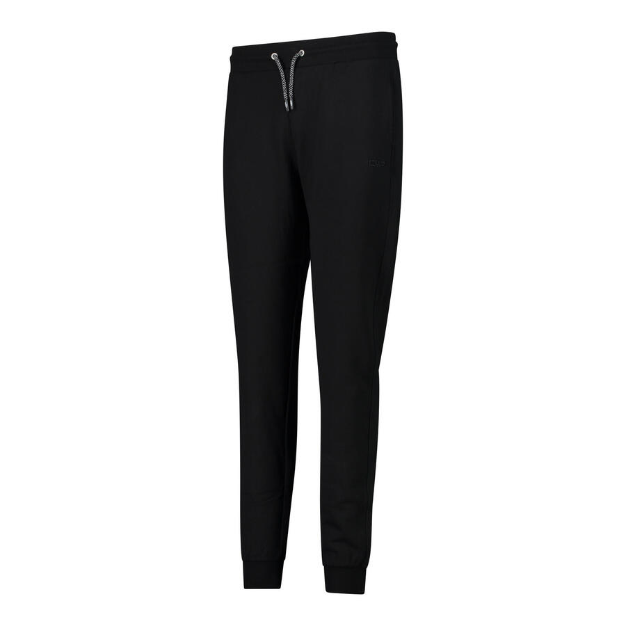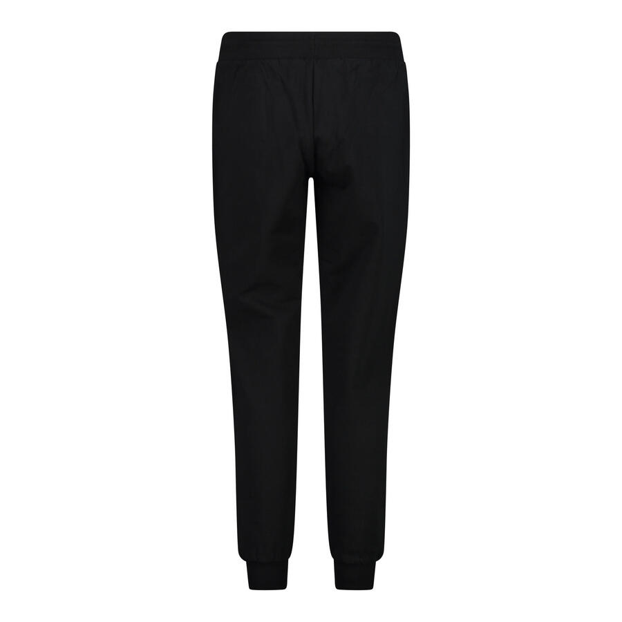 Женские длинные брюки CMP. Женские брюки из эластичного хлопка с резинкой на поясе и манжетах. Регулируемый шнурок, боковые карманы и классический крой делают их идеальными для отдыха дома и на природе. Вес: 375 г. Длина: 102 см. Состав: 95% хлопок, 5% эластан.