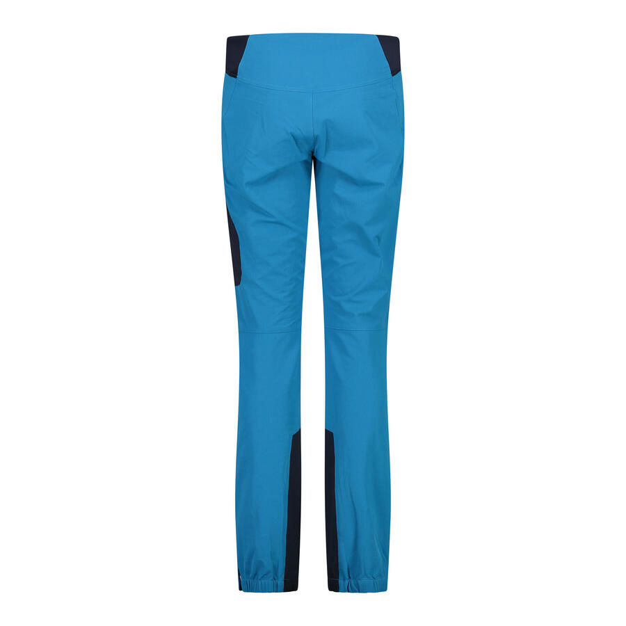 Женские брюки CMP. Треккинговые брюки из ткани рипстоп, растягивающейся в четырёх направлениях. Двойная внешняя обработка: водоотталкивающая (без ПФУ) и солнцезащитная для длительного использования, даже на большой высоте. Благодаря эластичному поясу они удобны для любого типа использования. Низ усилен эластичной тканью и устойчив к истиранию для лучшей посадки с альпинистскими ботинками. Модель с тремя карманами: двумя боковыми и одним на бедре. Материал: 90% полиамид, 10% эластан.