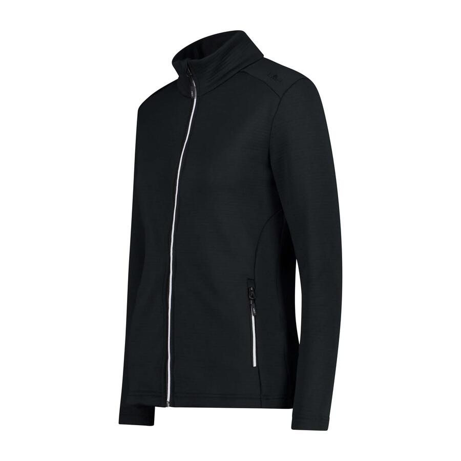 Женская куртка CMP. Флисовая куртка из жаккардовой ткани со специальной трубчатой отделкой, которая придает изделию технологичный вид. Stretch Performance — это пряжа, отличающаяся легкостью, теплоизоляцией и воздухопроницаемостью, а также простотой стирки и сушки. Сертификация Oeko-Tex гарантирует использование только нетоксичных для человека и окружающей среды веществ на протяжении всего процесса производства. Эта куртка с застежкой-молнией идеально подходит в качестве внешнего слоя для интенсивных занятий или моментов отдыха, а также под куртку в холодные дни благодаря своей малой объемности. Изделие имеет эластичные вставки на рукавах и в области сиденья, а также два боковых кармана. Технология: Oeko-Tex; Stretch Performance. Вес: 295 г. Длина: 67 см. Материал: 90% полиэстер, 10% эластан.