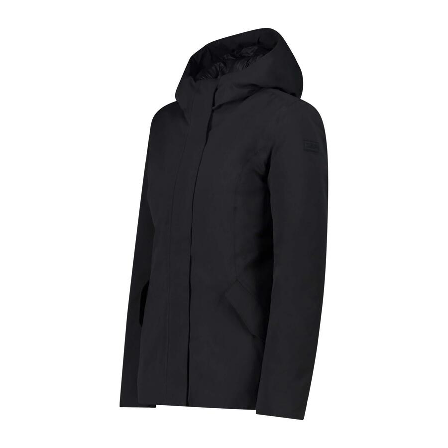 Женская куртка CMP Fix Hood. Куртка с несъемным капюшоном и утеплителем из Feel Warm Flock – синтетического пуха, полученного из мягкого, легко сжимаемого пуха. Гладкая внешняя поверхность обеспечивает классический, лаконичный вид, идеально подходящий для осенних дней в горах и городе. Мембрана Clima Protect обеспечивает водонепроницаемость (Waterproof 5000) и воздухопроницаемость (MVP 5000), а полностью проклеенные швы и водоотталкивающая внешняя обработка без ПФУ создают дополнительный барьер от проникновения воды. Два боковых кармана на молнии. Материал: 100% полиэстер.