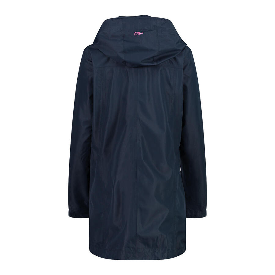 Женская куртка-дождевик CMP с капюшоном на пуговицах. Удобная, функциональная и лёгкая. Куртка легко помещается в рюкзак. Ветро- и водонепроницаемая куртка со съёмным капюшоном. Гидростатическое давление: 10 000 мм. Воздухопроницаемость (MVTR за 24 часа): 4000 г/м². Материал: 100% полиэстер.