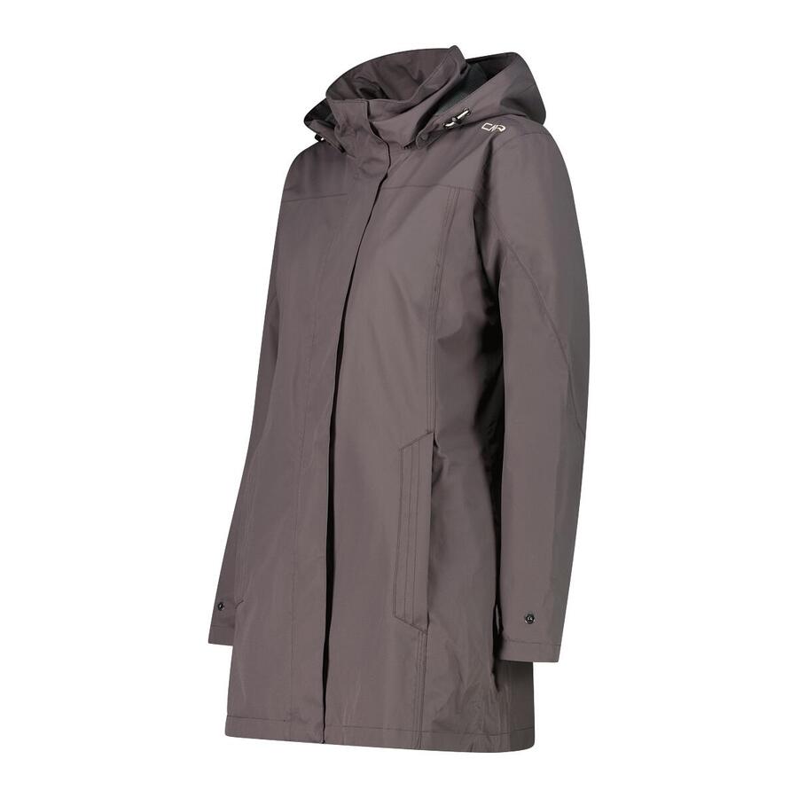 Женская куртка-дождевик CMP с капюшоном на пуговицах. Удобная, функциональная и лёгкая. Куртка легко помещается в рюкзак. Ветро- и водонепроницаемая куртка со съёмным капюшоном. Гидростатическое давление: 10 000 мм. Воздухопроницаемость (MVTR за 24 часа): 4000 г/м². Материал: 100% полиэстер.