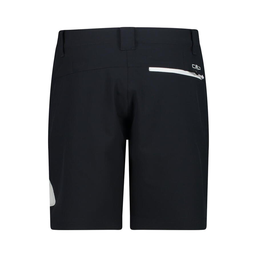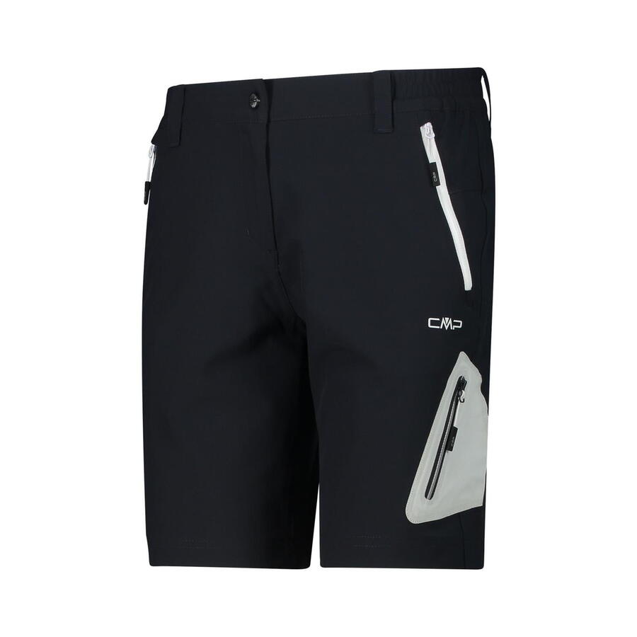 Женские бермуды CMP. Бермуды средней длины из ткани, растягивающейся в 4 стороны. Технология Dry Function способствует испарению пота и сохраняет тело сухим. Модель имеет эластичный пояс со шлёвками, два боковых кармана, задний карман на молнии и термокарман на штанине. Идеальная одежда для активного отдыха на свежем воздухе. Состав: 89% полиэстер, 11% эластан.