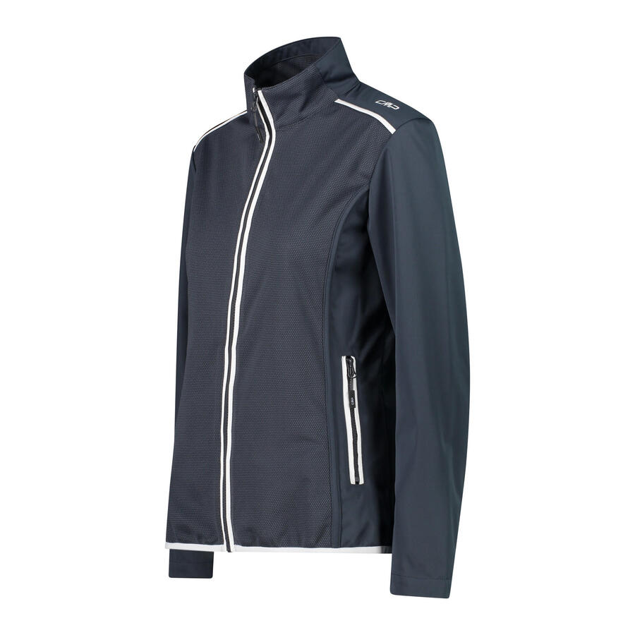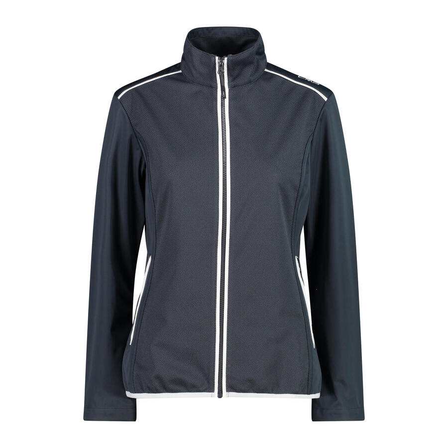 Женская куртка софтшелл CMP. Лёгкая, ветро- и водонепроницаемая куртка из софтшелла. Куртка имеет высокий воротник с защитой подбородка и боковые карманы на молнии. WP: 5000. MVP: 5000. Материал: 100% полиэстер.