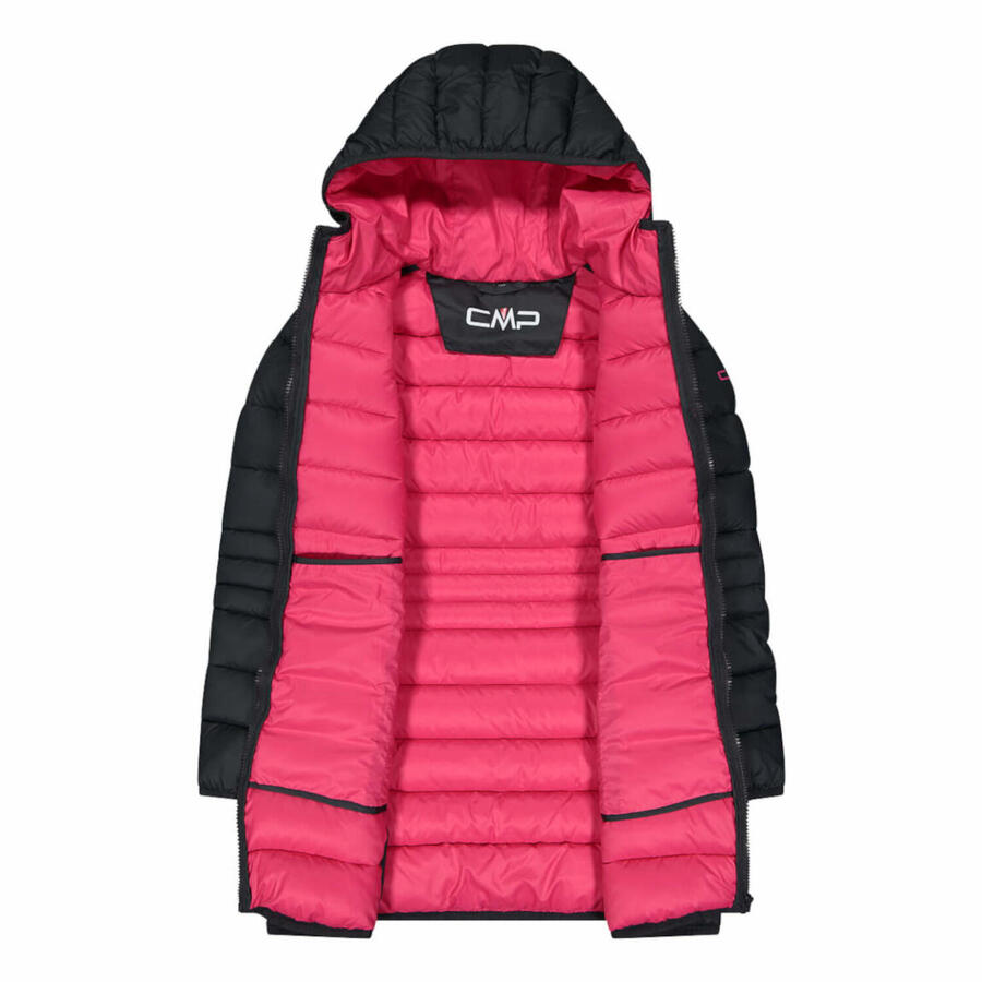 Стеганая куртка для девочек CMP KID G COAT FIX HOOD. Длинная стеганая куртка для девочек, которая обеспечивает еще больше тепла и длительную защиту в холодные дни. Утеплитель с технологией Feel Warm Flock обеспечивает тепло, воздухопроницаемость, водонепроницаемость и максимальную свободу движений, не утяжеляя куртку. Водоотталкивающий внешний материал эффективно защищает от небольшого дождя и влаги, сохраняя одежду сухой и комфортной. Функциональный и современный дизайн, идеально подходящий для зимней погоды с функциональностью и комфортом. Подкладка: 100% полиэстер. Наполнитель: 100% полиэстер. Внешний материал: 100% полиэстер.