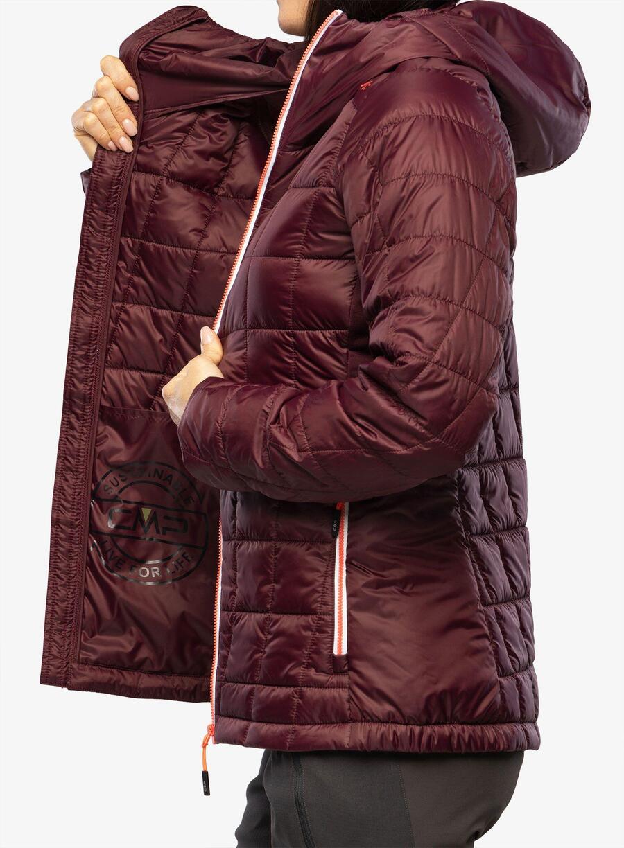 Женская куртка CMP Fix Hood. Сверхлегкий, прочный и дышащий второй слой с утеплителем PrimaLoft Black Insulation Hi-Loft Ultra из переработанного материала. Особые механически ориентированные складки, характерные для утеплителя, противостоят сжатию и создают пространство для удержания воздуха и сохранения тепла тела, обеспечивая комфорт даже в холодную погоду. Благодаря лёгкой компрессии куртку можно носить по мере необходимости, а когда она не нужна, складывать в рюкзак. Два боковых кармана на молнии. Передняя молния с ветрозащитным клапаном. Капюшон. Материал: 100% полиэстер.
