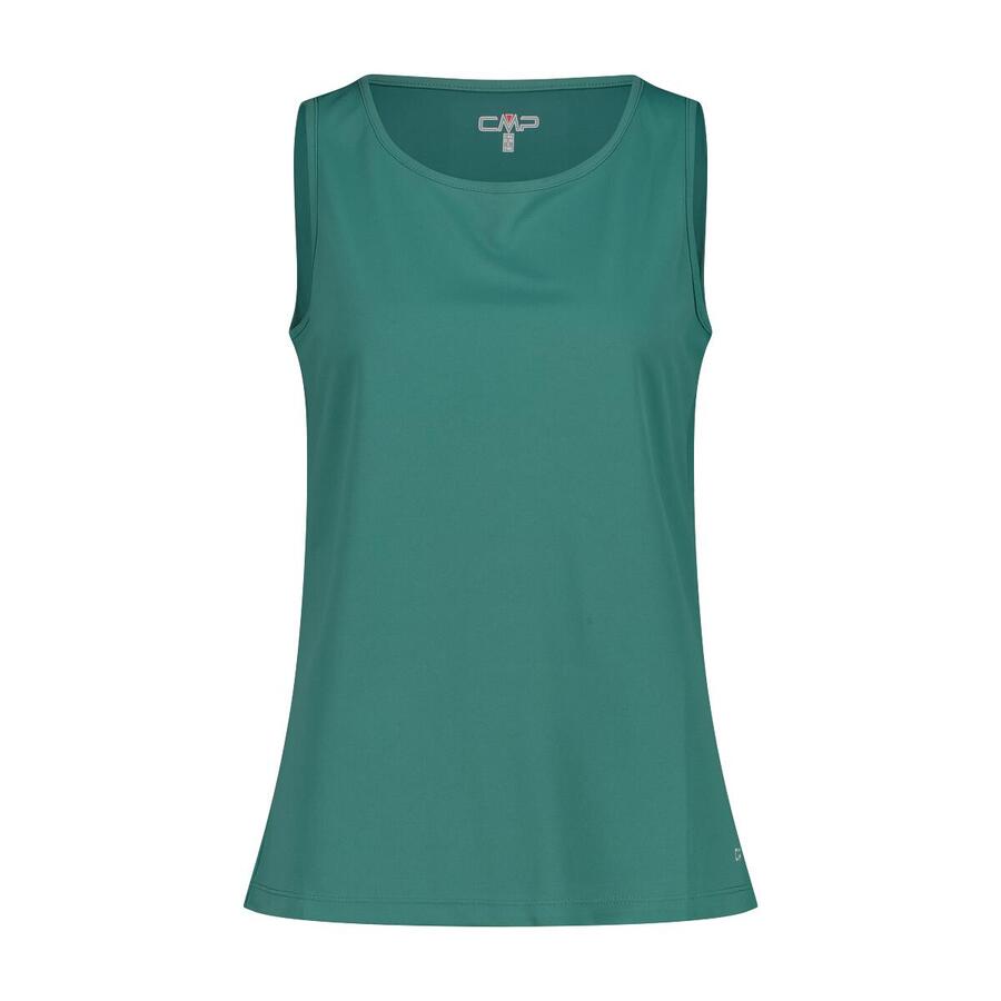 Женская майка без рукавов CMP. Эта майка с круглым вырезом — идеальное решение для активного отдыха на свежем воздухе. Технология Dry Function способствует быстрому испарению пота и естественной терморегуляции. Антибактериальная обработка гарантирует высокий уровень гигиены и комфорта в любых ситуациях. Материал: 100% полиэстер.