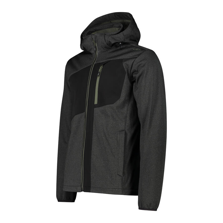 Мужская куртка CMP Zip Hood. Софтшелловая куртка со съёмным капюшоном из переработанного полиэстера для тех, кто ищет одежду с превосходными характеристиками. Разработана для защиты от непогоды благодаря трёхслойной конструкции, сочетающей внешний слой с мягкой и тёплой флисовой подкладкой, также изготовленной из переработанного материала. Мембрана Clima Protect обеспечивает водонепроницаемость головы и высокую воздухопроницаемость. Куртка имеет съёмный регулируемый капюшон со шнурком, переднюю молнию с внутренним ветрозащитным клапаном и карманом для защиты от натирания, контрастную подкладку, флисовую подкладку на воротнике, два боковых кармана на молнии и шнурок внизу для регулировки посадки. Водоотталкивающая обработка без PFC. Материал: 100% полиэстер.