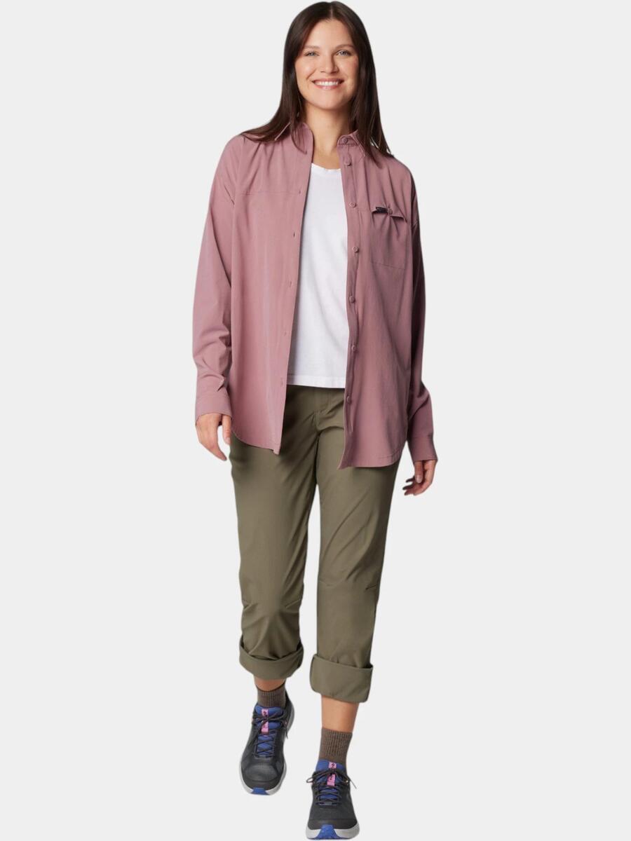 Линейка продукции Leslie Falls – это новый всплеск цвета в женской коллекции одежды для походов Columbia. С брюками Leslie Falls женщины могут убить двух зайцев одним выстрелом: с одной стороны, они получают легкие походные брюки с функциональными решениями, а с другой – последние уличные тренды в крое и цвете. Эти брюки по-настоящему многофункциональны, поскольку их эластичный материал прочный и устойчив к истиранию, а крой хорошо облегает ноги и обеспечивает комфортную носку. В брюках реализованы решения, типичные для профессиональных походных брюк. Материал быстро сохнет, покрытие Omni Shield отталкивает воду и жидкую грязь, не оставляя пятен, а технология защиты от ультрафиолета защищает от вредного воздействия ультрафиолетовых лучей, позволяя дольше и безопаснее проводить время на свежем воздухе. Карман на молнии надежно хранит мелкие личные вещи. Эластичная ткань, артикулированные колени и приподнятый эластичный пояс обеспечивают непревзойденную свободу движений. Мы рекомендуем эти брюки для отдыха, походов, путешествий и просто для повседневного ношения.