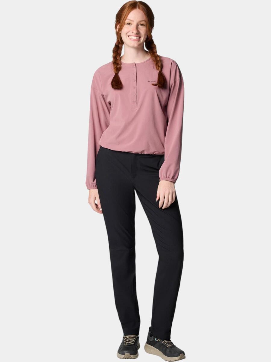 Линейка продукции Leslie Falls – это новый всплеск цвета в женской коллекции одежды для походов Columbia. С брюками Leslie Falls женщины могут убить двух зайцев одним выстрелом: с одной стороны, они получают легкие походные брюки с функциональными решениями, а с другой – последние уличные тренды в крое и цвете. Эти брюки по-настоящему многофункциональны, поскольку их эластичный материал прочный и устойчив к истиранию, а крой хорошо облегает ноги и обеспечивает комфортную носку. В брюках реализованы решения, типичные для профессиональных походных брюк. Материал быстро сохнет, покрытие Omni Shield отталкивает воду и жидкую грязь, не оставляя пятен, а технология защиты от ультрафиолета защищает от вредного воздействия ультрафиолетовых лучей, позволяя дольше и безопаснее проводить время на свежем воздухе. Карман на молнии надежно хранит мелкие личные вещи. Эластичная ткань, артикулированные колени и приподнятый эластичный пояс обеспечивают непревзойденную свободу движений. Мы рекомендуем эти брюки для отдыха, походов, путешествий и просто для повседневного ношения.