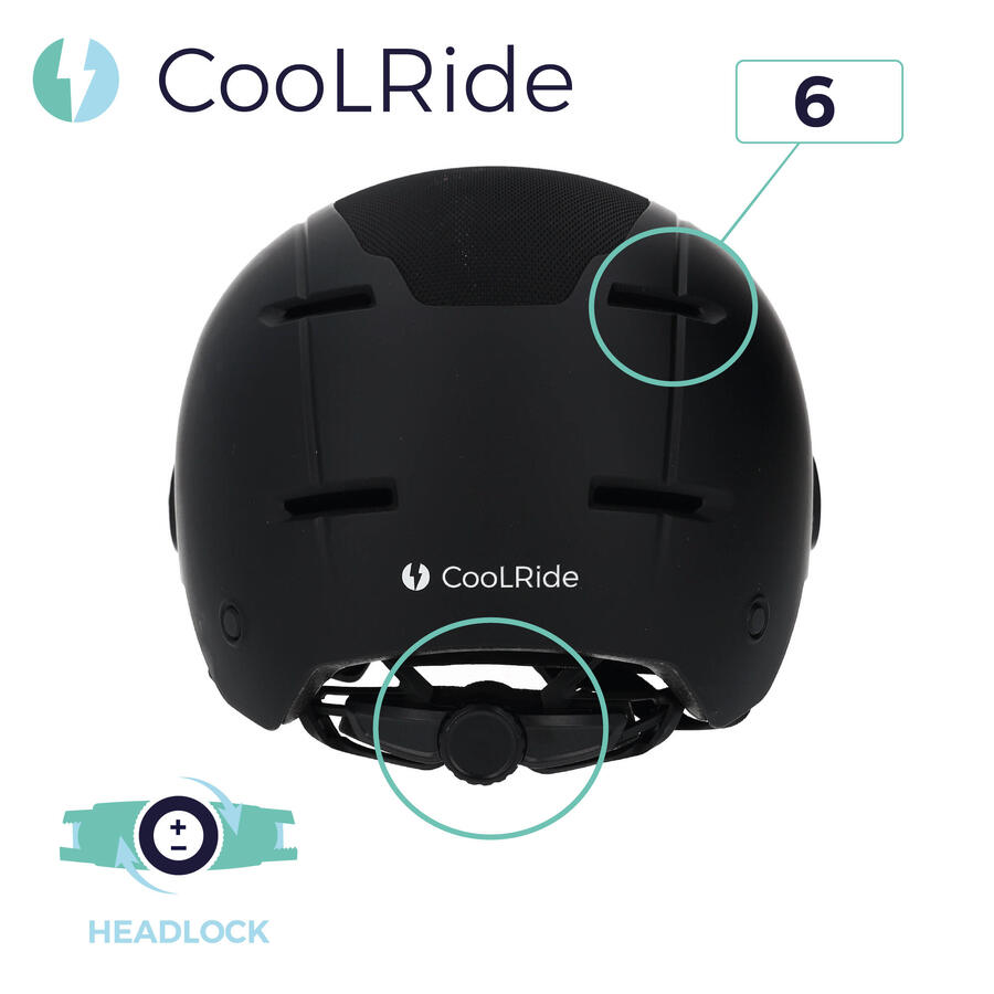 Взрослый шлем с регулируемым козырьком, идеально подходит для защиты от ветра и насекомых. Размер (окружность головы): 55/58 см. Регулировка окружности головы с помощью диска Quickturn. 6 вентиляционных отверстий для оптимального комфорта. Регулируемые боковые ремни безопасности. Съёмная и моющаяся мягкая подкладка. Корпус из ударопрочного АБС-пластика. Внутренний материал из пенополистирола (EPS). Шлем для велосипедистов, скейтбордистов, роликовых коньков и самокатов. Цвет: чёрный. Сертифицирован CE и EN 1078. Козырьки соответствуют действующим стандартам. Характеристики