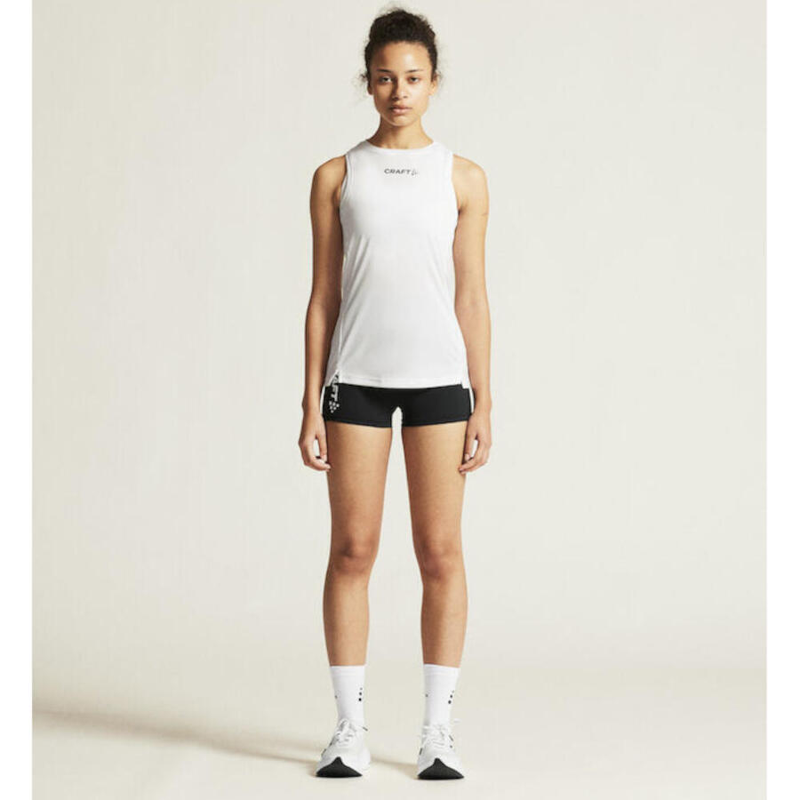 Женская майка-топ Rush 2.0 Singlet размера M от Craft. Rush 2.0 Singlet — это лёгкая тренировочная майка, которая эффективно отводит влагу и охлаждает тело, обеспечивая максимальный комфорт во время занятий лёгкой атлетикой, гимнастикой и других подобных занятий. Изготовленная из переработанного полиэстера, эта модель относится к новому поколению спортивной одежды с меньшим воздействием на окружающую среду. Майка имеет спину-борцовку, рельефные детали и лаконичный дизайн, идеально подходящий для размещения логотипов клуба, спонсора или компании. Материал: 100% полиэстер.