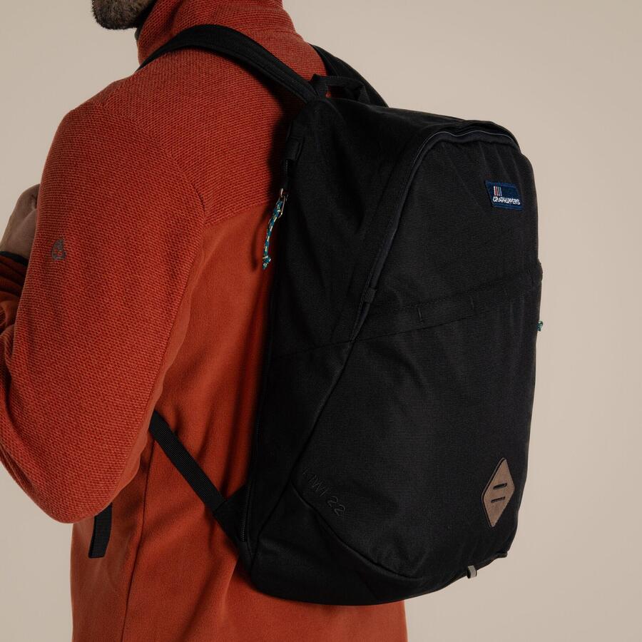 Стильный 22-литровый рюкзак, идеально подходящий для долгих выходных. Изготовлен из переработанного полиэстера с водоотталкивающим покрытием. Он имеет вместительное основное отделение, боковые карманы и отделение с подкладкой из водорослевого пеноматериала BLOOM для 12-дюймового планшета или 16-дюймового ноутбука. Мягкие плечевые ремни и задняя панель, ремень-кафе, светоотражающие детали и петли для подвешивания обеспечивают безопасность и комфорт.