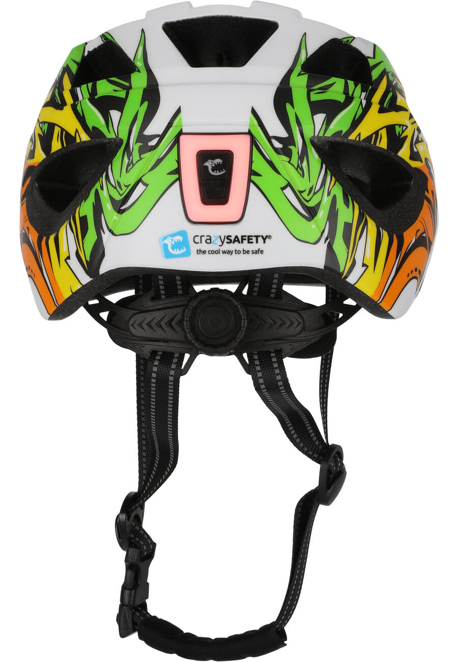 Велосипедный шлем Crazy Safety Cool был специально разработан для детей и превращает ношение шлема в удовольствие, а не в рутину. Благодаря уникальной форме и продуманному дизайну дети обожают этот шлем – они носят его не потому, что должны, а потому, что считают его крутым. Он изготовлен из лёгкого высококачественного пенополистирола с использованием прочной технологии литья под давлением и обеспечивает оптимальную защиту и высокий уровень комфорта. Регулируемая внутренняя система застёжки с диском позволяет легко регулировать размер, обеспечивая надёжную посадку. Красный светодиодный фонарь с девятью различными функциями, заряжаемый от USB, встроенный в заднюю часть шлема, обеспечивает дополнительную безопасность, значительно улучшая видимость. Пятнадцать стратегически расположенных вентиляционных отверстий спереди, сверху и сзади обеспечивают равномерную циркуляцию воздуха, сохраняя прохладу даже во время активных поездок. Съёмная моющаяся внутренняя подкладка и защита подбородка дополняют комфорт. Шлем идеально подходит для таких занятий, как катание на велосипеде, скейтборде, самокате, беговеле и роликовых коньках – он одновременно безопасен и стильный. Шлем Crazy Safety соответствует строгим стандартам безопасности. Соответствует стандарту EN1078:2012 A1 и прошел всесторонние испытания. Он был разработан и разработан в Дании и изготовлен на высококачественном заводе в Китае. Весом всего 220 граммов, он обеспечивает лёгкую и надёжную защиту для маленьких искателей приключений.