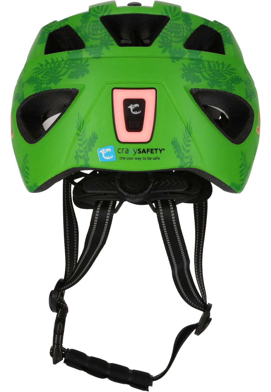 Безопасность не обязательно должна быть скучной! Велосипедный шлем Crazy Safety Cool настолько стильный и продуманный, что дети будут носить его с удовольствием – изо дня в день. Благодаря уникальной форме, ярким цветам и привлекательному дизайну этот шлем быстро станет любимым спутником на двух колесах. Будь то в школе, парке или на скейт-парке – этот шлем не только обеспечивает защиту, но и дарит радость. Мы верим, что безопасность должна быть веселой – и именно это и есть Crazy Safety. Наши шлемы сочетают в себе функциональность и дизайн таким образом, что это восхищает детей и убеждает родителей. С самого начала обучаясь с удовольствием носить шлем, дети в игровой форме развивают полезные привычки для безопасной жизни на дороге. Шлем Crazy Safety изготовлен из защитного пенополистирола с прочной литой конструкцией – идеально подходит для детской головы. Внутренняя система регулировки обеспечивает точную посадку и высокий комфорт при ношении. Благодаря 15 продуманно расположенным вентиляционным отверстиям голова остается приятно прохладной даже в теплые дни. Отличительная особенность: встроенный светодиодный задний фонарь с 9 режимами освещения обеспечивает дополнительную видимость. и безопасность – легко заряжается через USB.