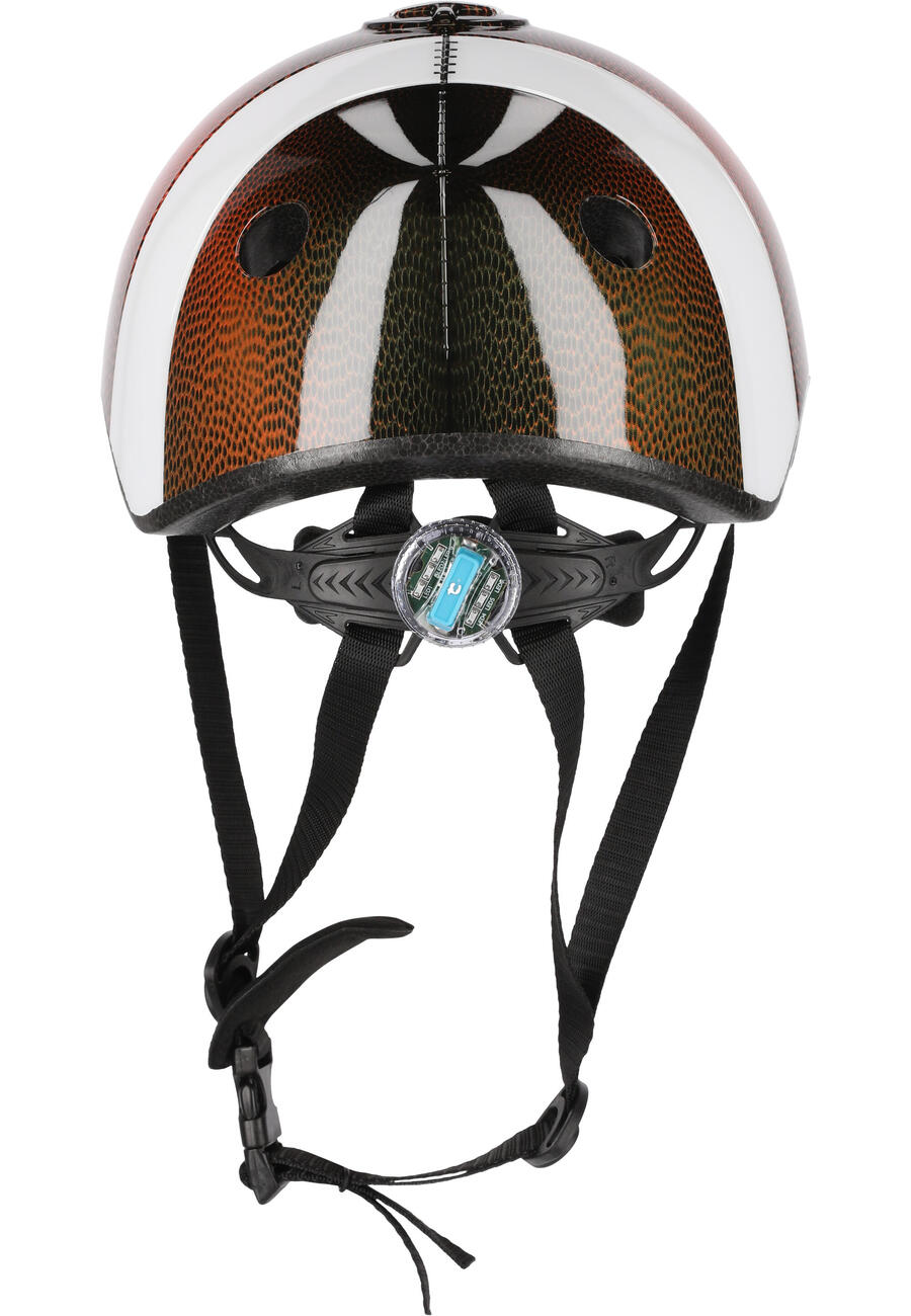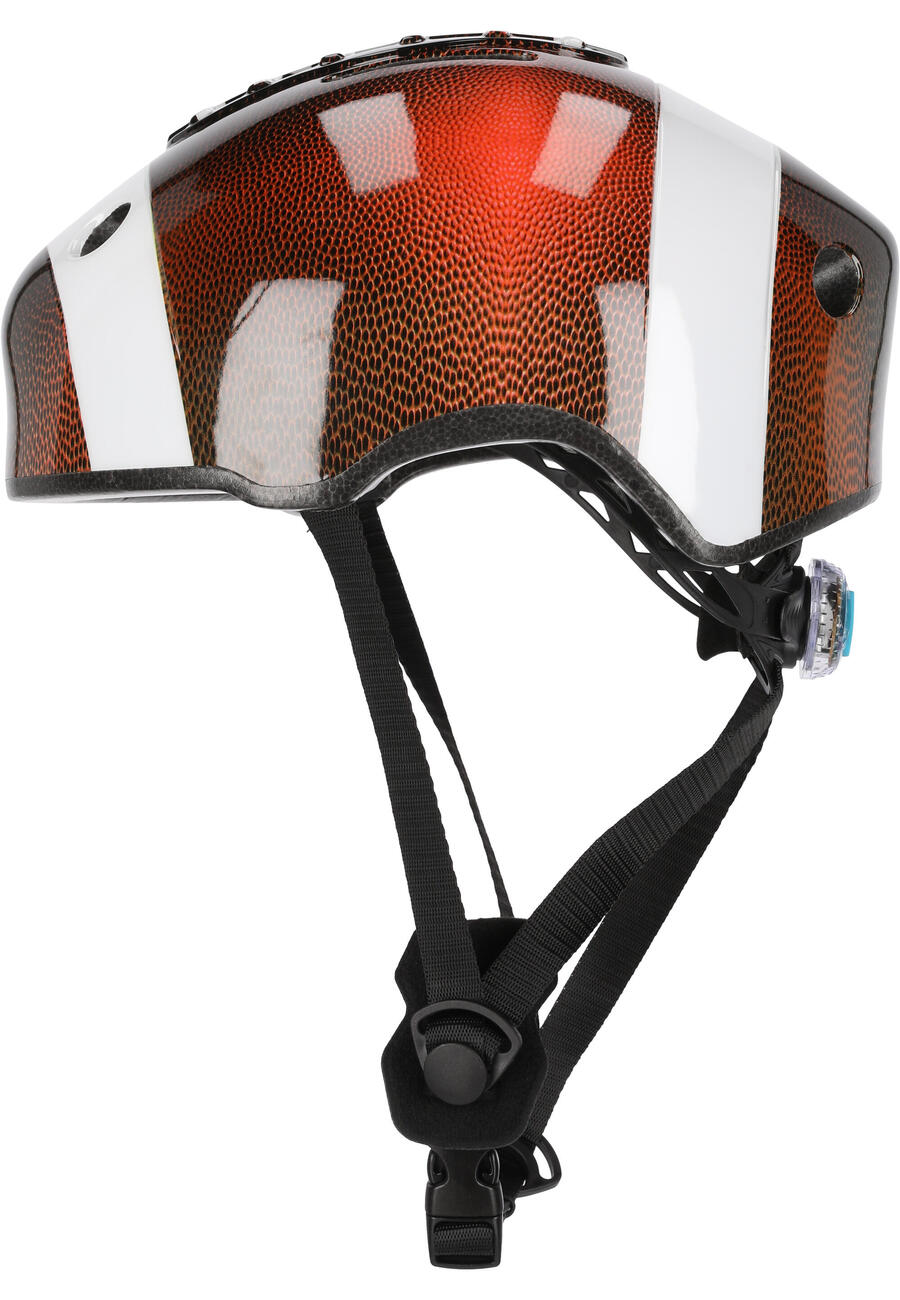 Шлем, который дети действительно хотят носить? Да, это возможно! Футбольный шлем Crazy Safety 3D — это больше, чем просто велосипедный шлем — это персонаж, спутник, частичка индивидуальности. Благодаря своему культовому 3D-футбольному дизайну шлем быстро становится любимым аксессуаром в любом приключении. Будь то велосипед, самокат или скейтборд — этот шлем привносит веселье в повседневную жизнь и делает безопасность настоящим приключением. Уникальные запатентованные конструкции шлемов Crazy Safety были специально разработаны, чтобы радовать детей и успокаивать родителей. Каждый шлем, изготовленный из литой конструкции и амортизирующего пенополистирола, обеспечивает надежную защиту в случае падения. Встроенный светодиодный задний фонарь с тремя режимами освещения повышает видимость в потоке машин — идеальное решение для дополнительной безопасности по дороге в школу или в сумерках. Внутренняя система регулировки позволяет быстро и легко подогнать шлем по голове ребенка. Шесть больших вентиляционных отверстий обеспечивают свежий воздух в каждом приключении, а съёмная моющаяся внутренняя подкладка обеспечивает гигиену и комфорт. Ремешки в тон шлема и мягкая подкладка для подбородка дополняют образ. общий пакет – удобный для детей и функциональный.