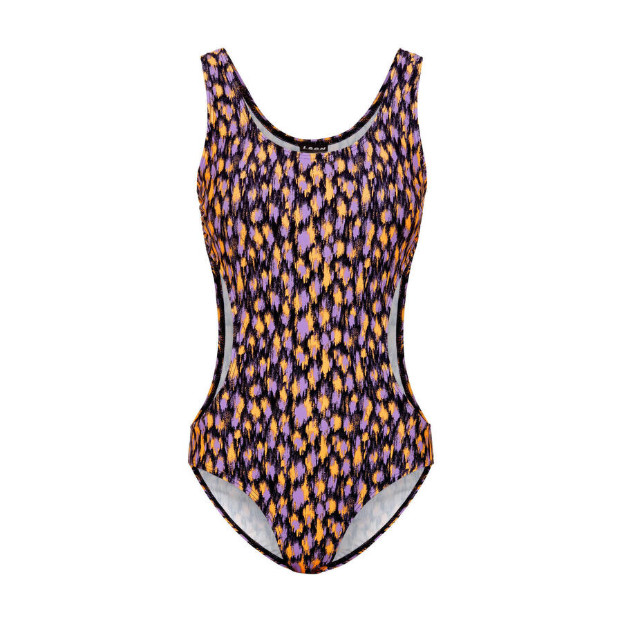Изысканный купальник от LSCN by Lascana с вырезами по бокам. Модный принт по всей поверхности. Высокий вырез бедра, плоская спинка. Материал, не требующий сложного ухода, с переработанным полиамидом. SUN-18