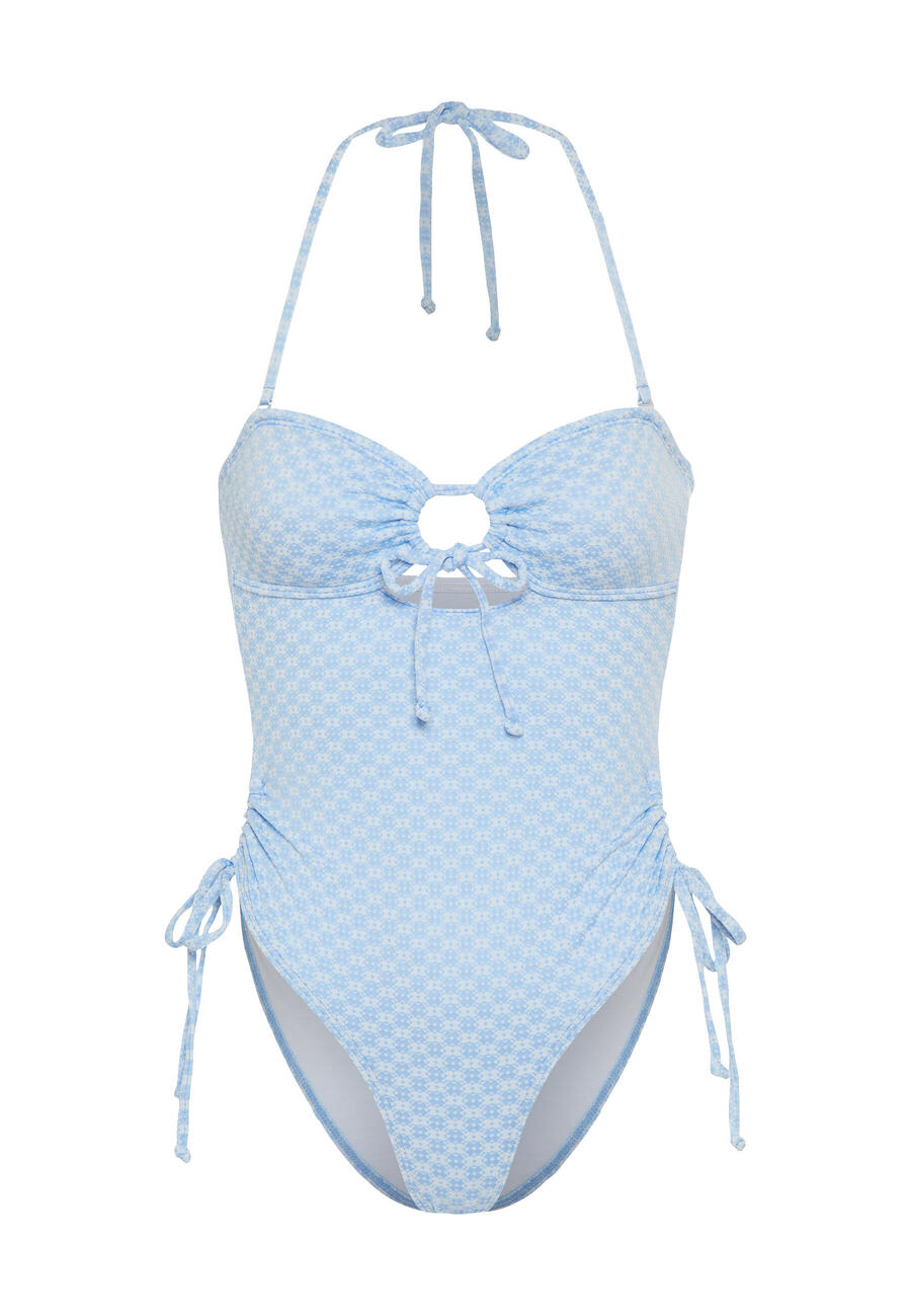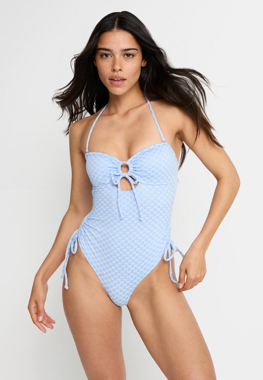 Универсальный купальник от Lascana. Вырез и завязка спереди. Регулируемые сборки по бокам. Можно носить с халтер-халтер или без бретелек. Изготовлен из модной фактурной ткани. ING-561D