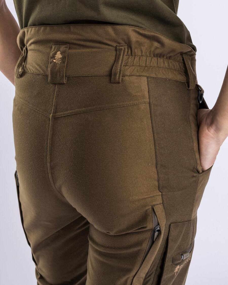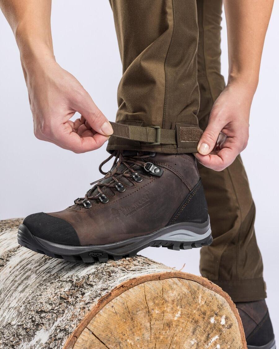 Тихие и лёгкие женские брюки Furudal Retriever Active от PINEWOOD идеально подходят для выслеживания дичи и любых видов активного отдыха в изменчивых погодных условиях. Прочный материал из 100% переработанного полиэстера оснащён ветро- и водонепроницаемой мембраной и проклеенными швами для надёжной защиты от непогоды. Внешний материал: 100% полиэстер. Дополнительная информация: вентиляционные молнии по бокам; 2 передних кармана; 2 накладных кармана на молнии; держатель для боеприпасов в кармане на штанине; быстросъёмная застёжка на штанине; крючки для шнурков; водо- и грязеотталкивающая обработка Bionic Finish Eco; вес около 810 г для размера M; женственный фасон.