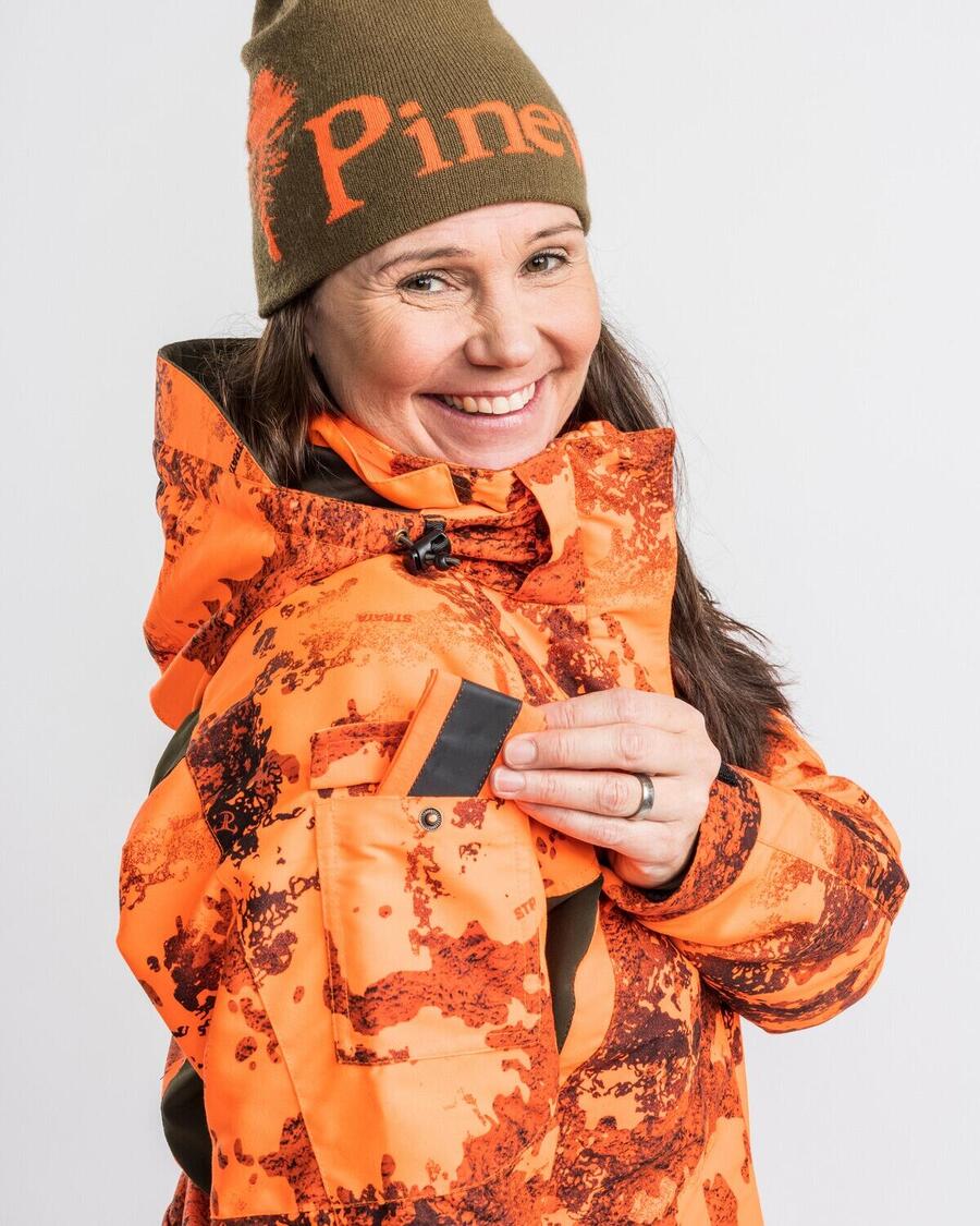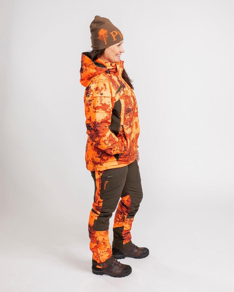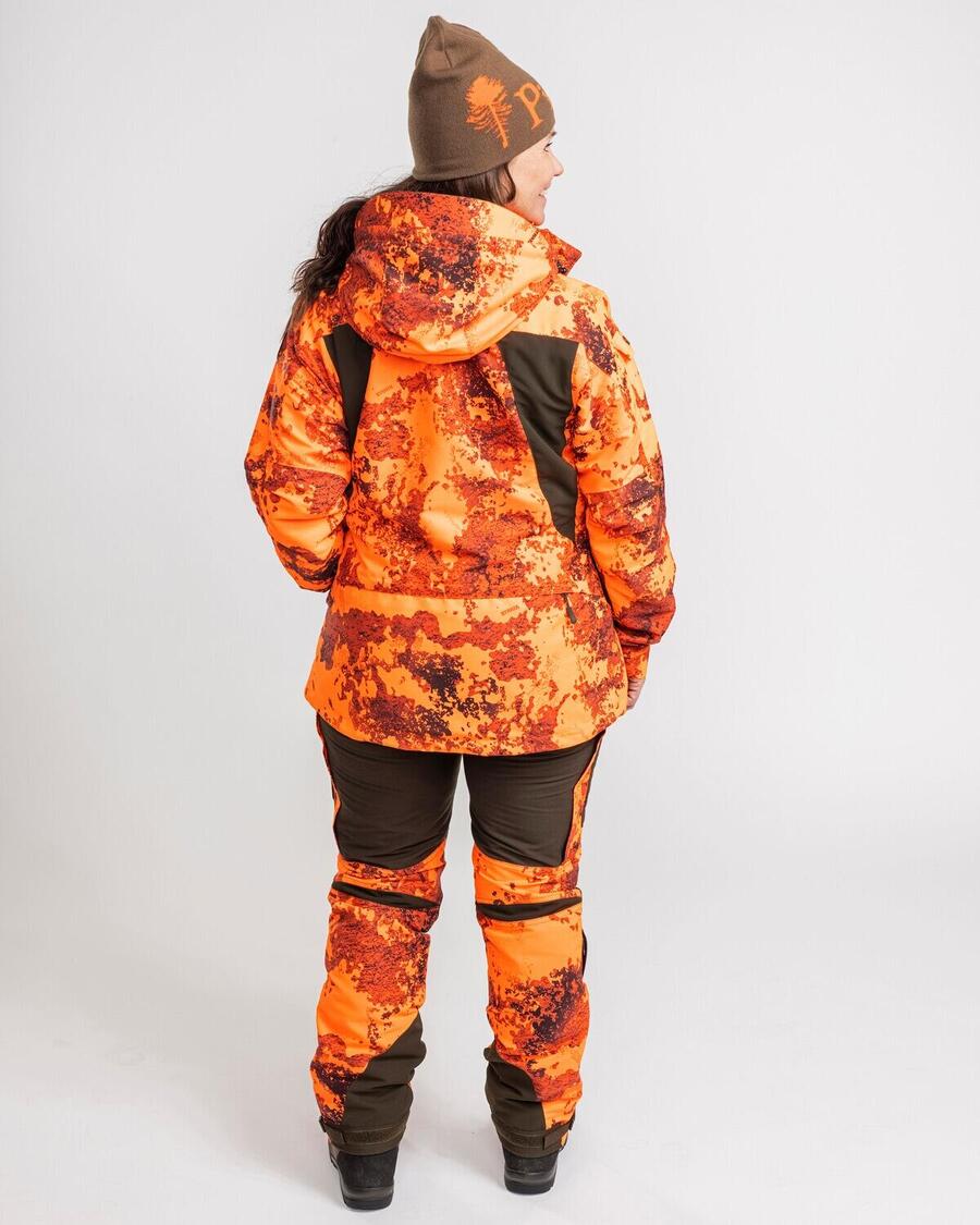 Женская куртка Hunter Pro Xtreme 2.0 Camou от PINEWOOD в сигнальном камуфляжном принте Strata Blaze отвечает самым высоким требованиям активных охотников и страстных кинологов. Ветро- и водонепроницаемая мембрана и проклеенные швы обеспечивают максимальную защиту от экстремальных погодных условий. Высокоэластичные вставки, растягивающиеся в 4 направлениях, обеспечивают оптимальную свободу движений и максимальный комфорт. Внешняя ткань: 100% полиэстер; Другие материалы: эластичные вставки, 92% полиэстер, 8% эластан. Дополнительные сведения об изделии: вентиляционные молнии по бокам; отстегивающийся капюшон; 2 кармана для рации/мобильного телефона; 2 боковых кармана на молнии; карман для дичи; воротник со светоотражающей лентой для дополнительной безопасности; светоотражающая лента со светоотражателем, встроенным в небольшой карман на рукаве; интегрированные плечевые ремни; водо- и грязеотталкивающая пропитка Bionic Finish Eco; женственный крой.
