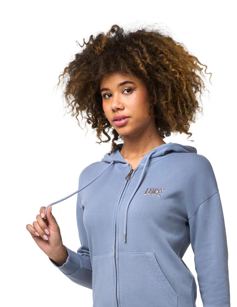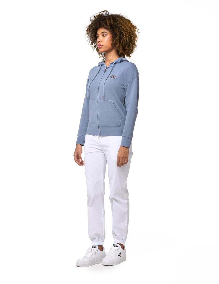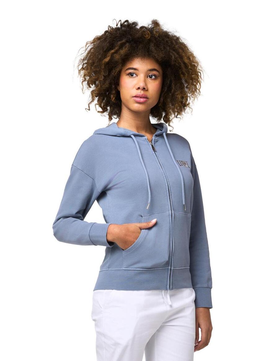 Женская толстовка с капюшоном, регулируемым шнурком и эластичными манжетами и подолом. Застёжка-молния с металлическим бегунком и большой карман-кенгуру спереди.